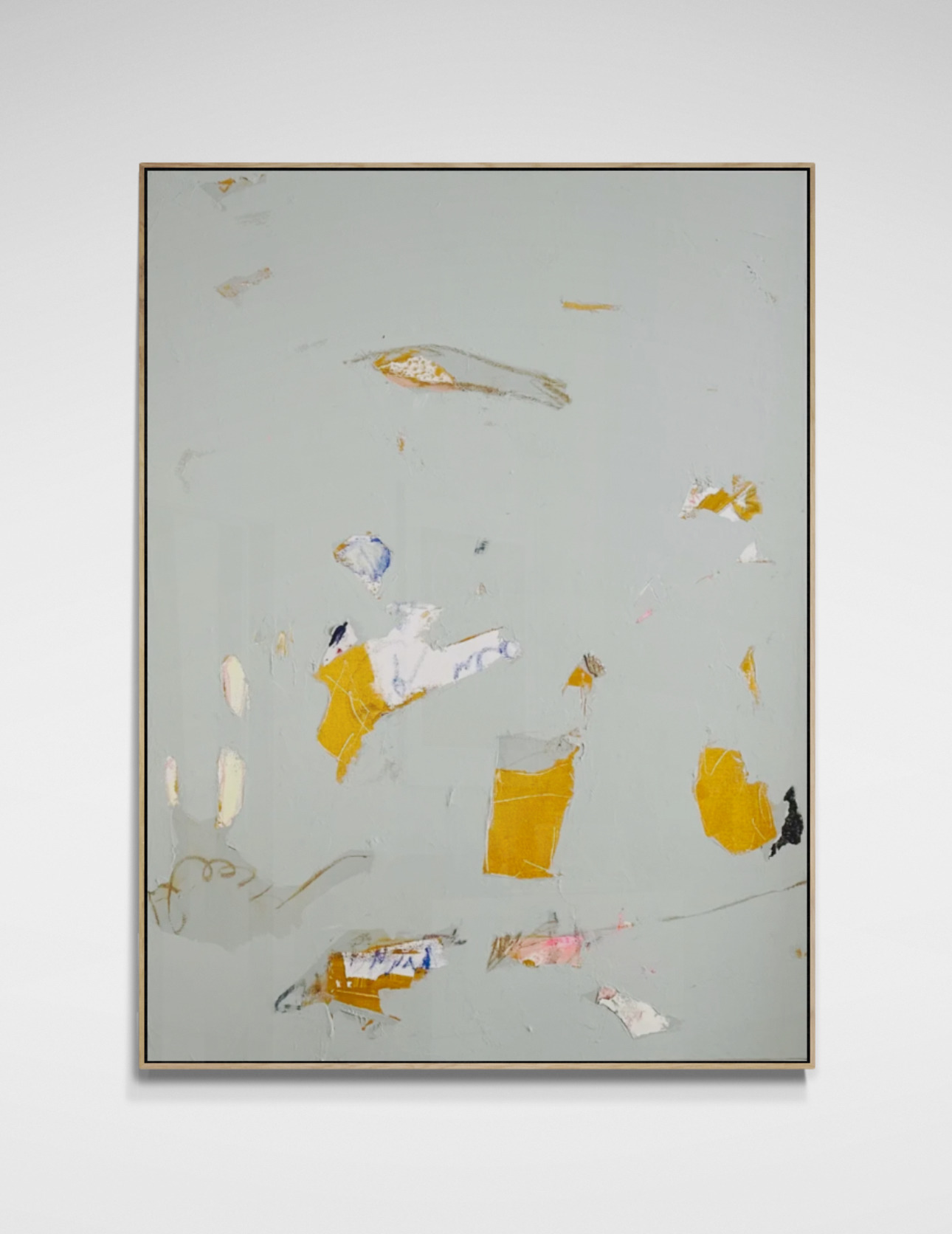 Acrylic, collage, plaster, charcoal, pastels and graphite on canvas