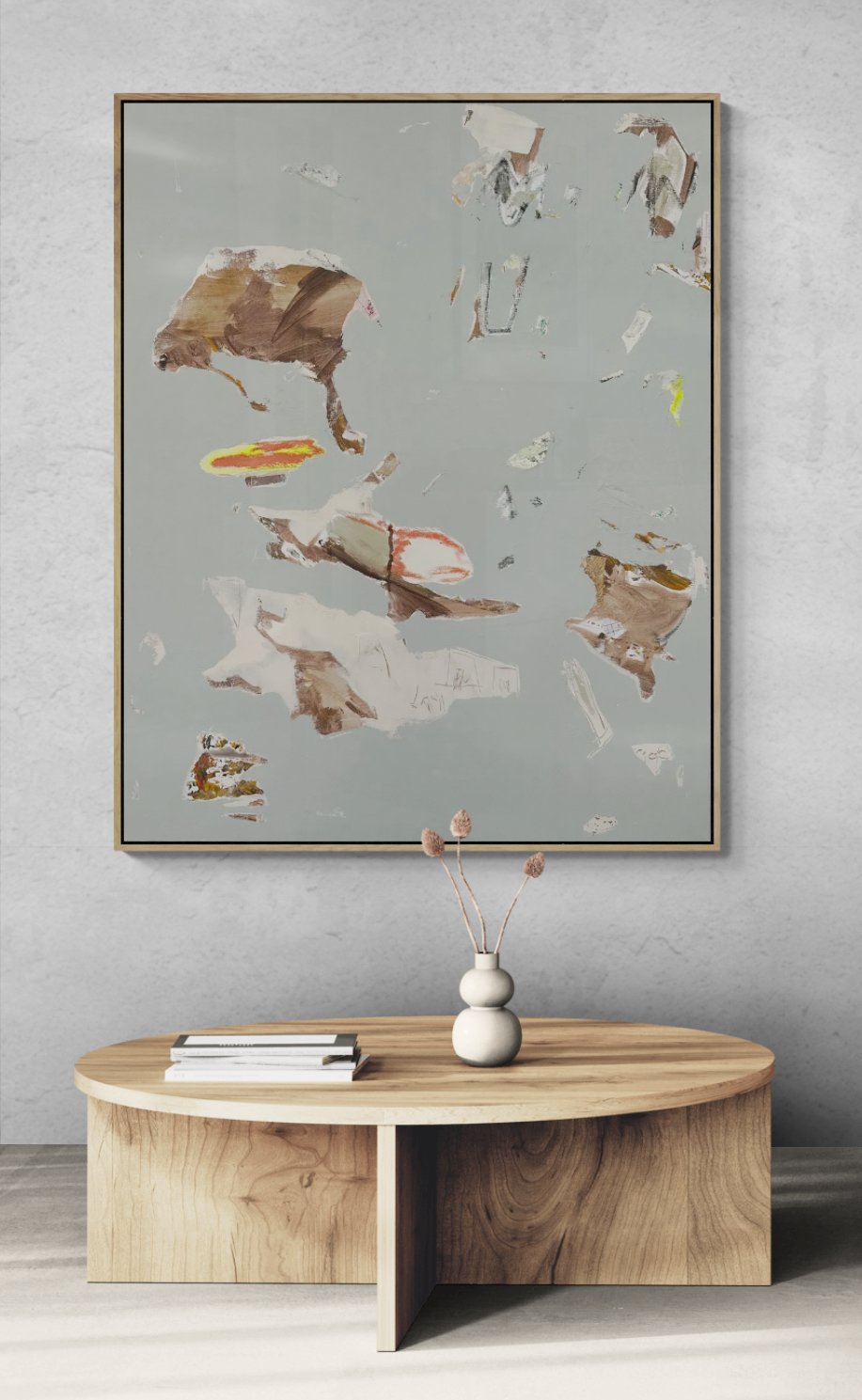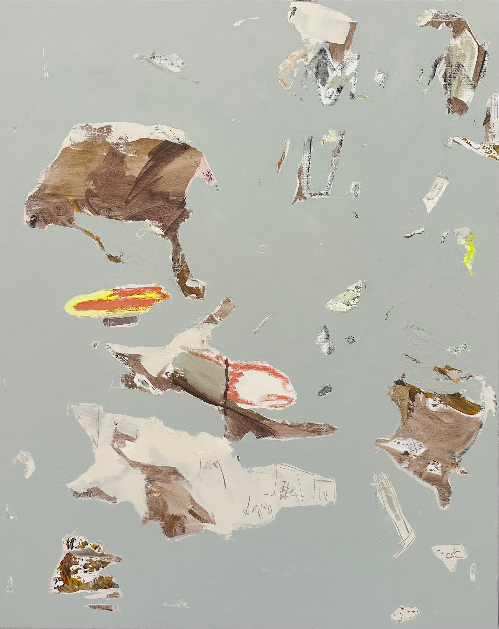 Acrylic, collage, plaster, pigments, oil, charcoal, pastels and graphite on canvas