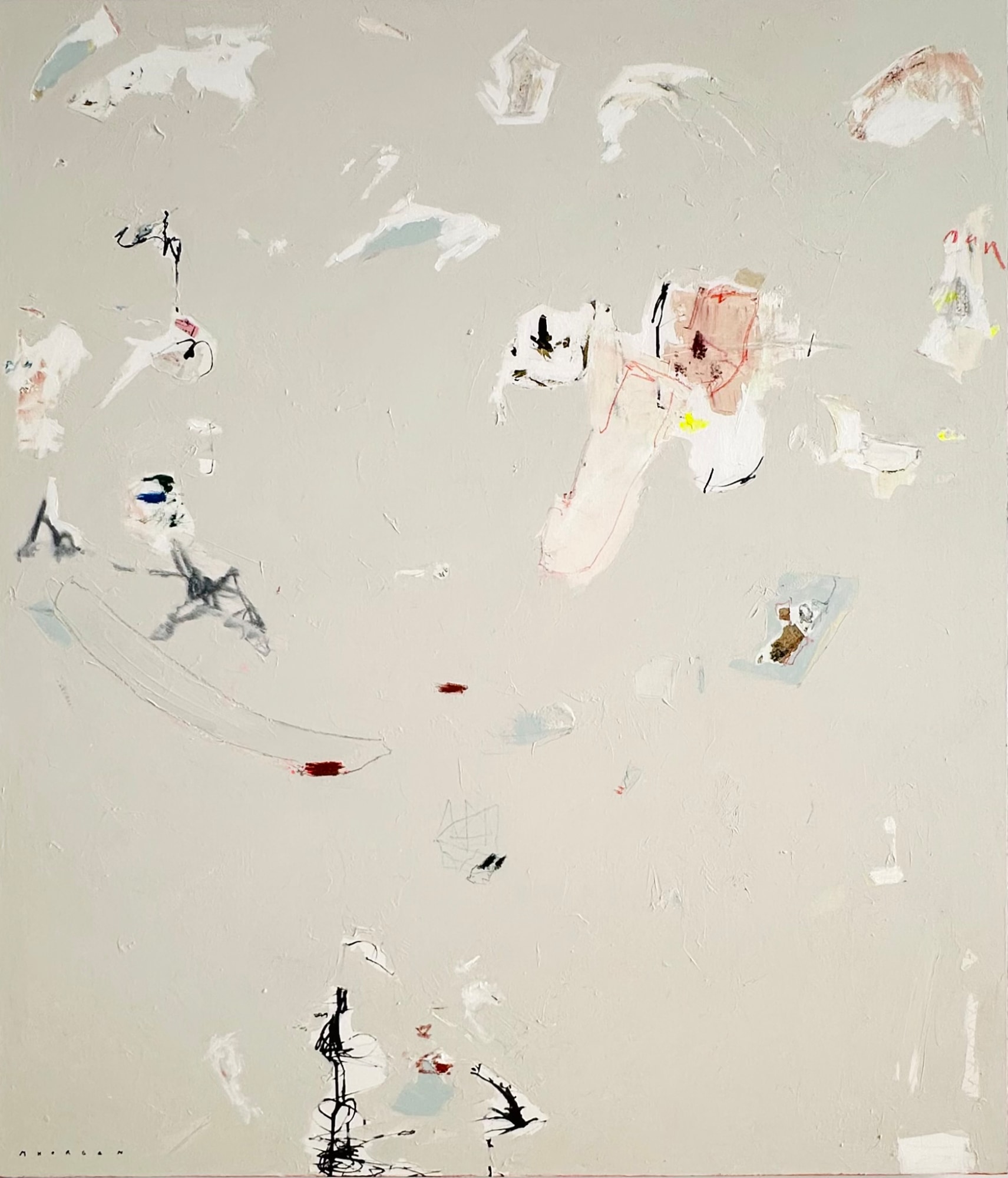 Acrylic, China ink, collage, plaster, charcoal, pastels and graphite on canvas