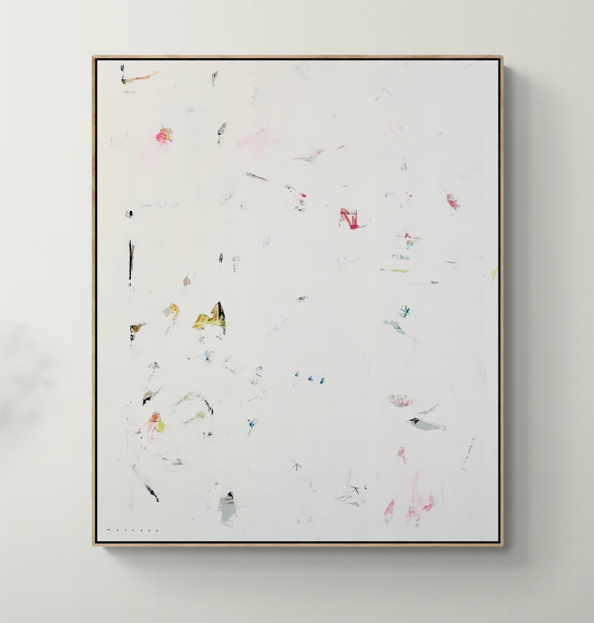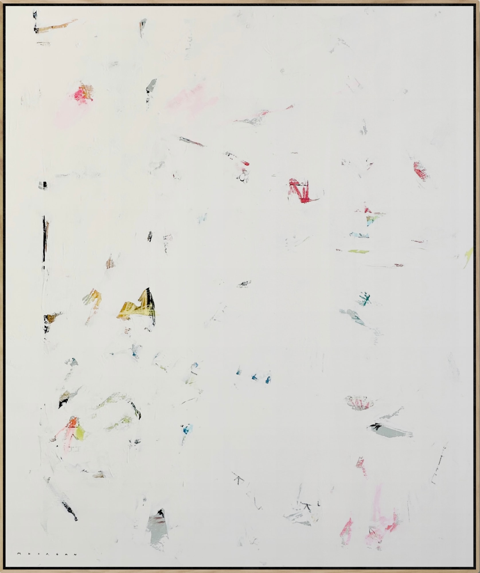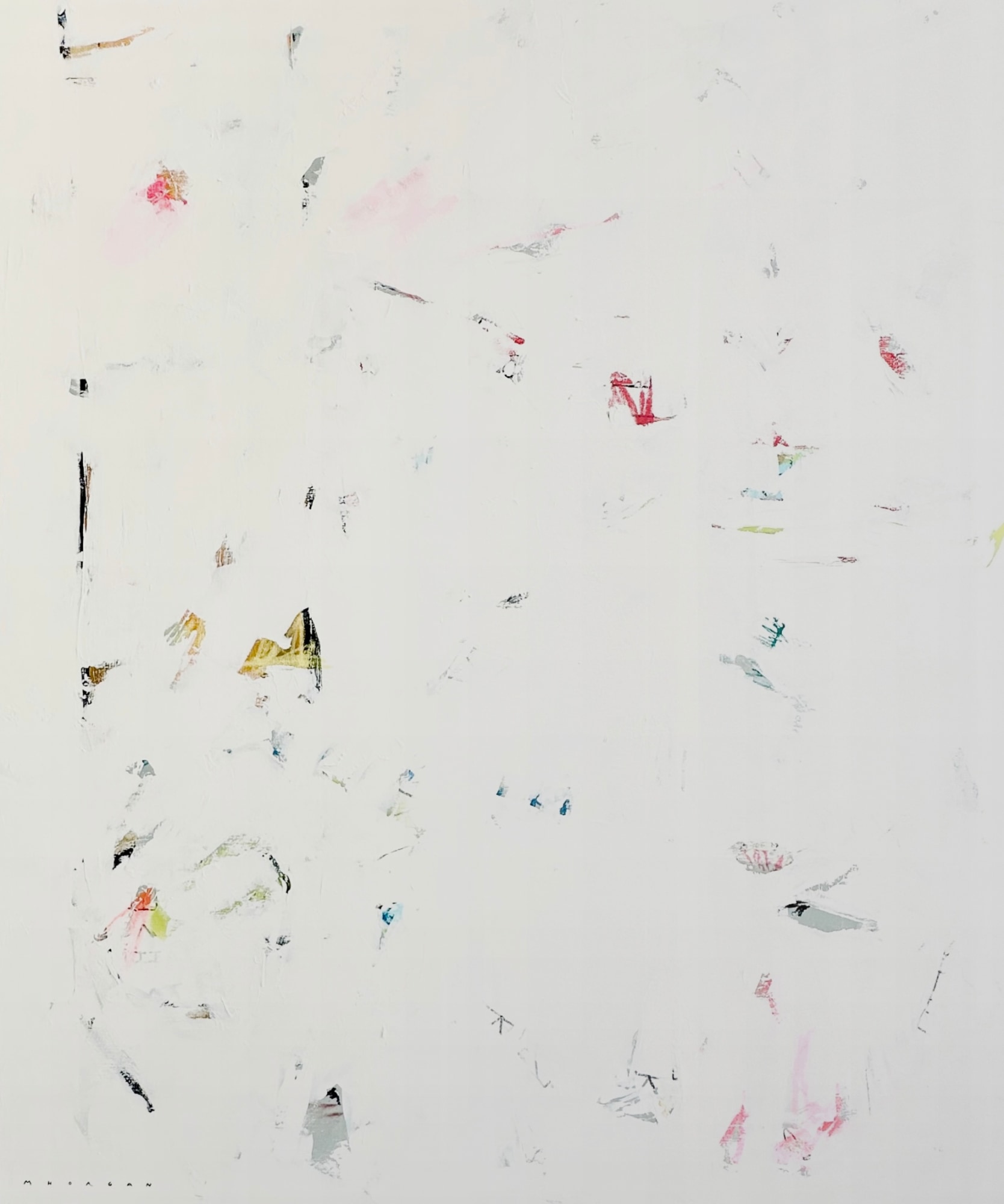 Acrylic, collage, plaster, pigments, charcoal, pastels and graphite on canvas