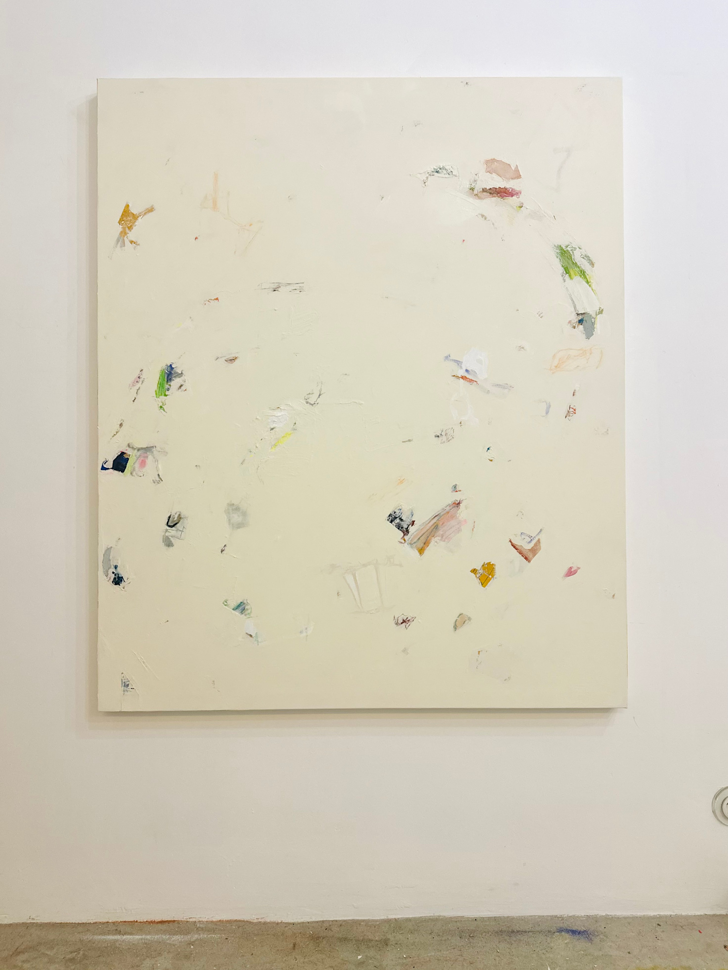 Acrylic, collage, plaster, dirt, charcoal, pastels and graphite on canvas