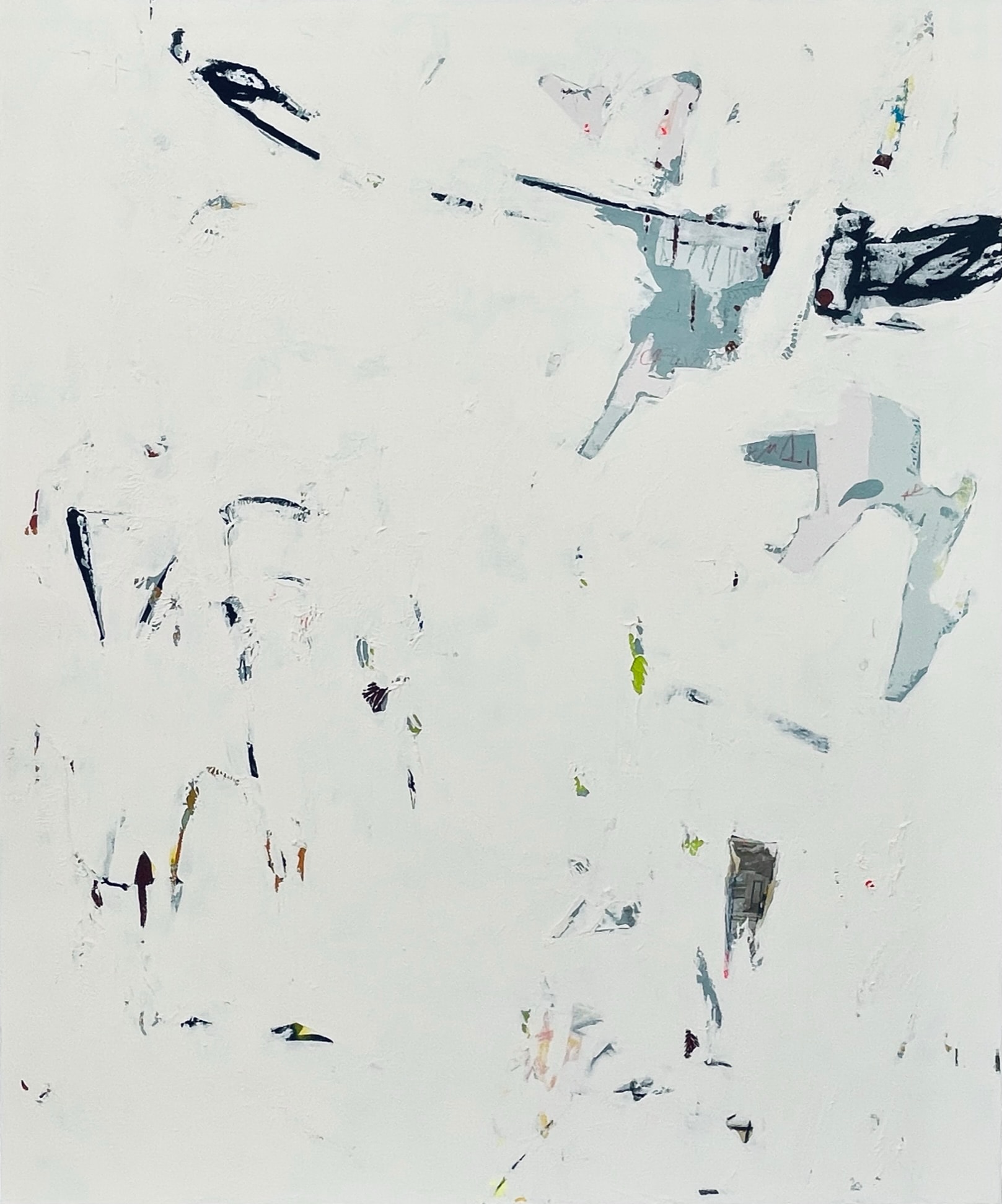 Acrylic, China ink, collage, plaster, charcoal, pastels and graphite on canvas