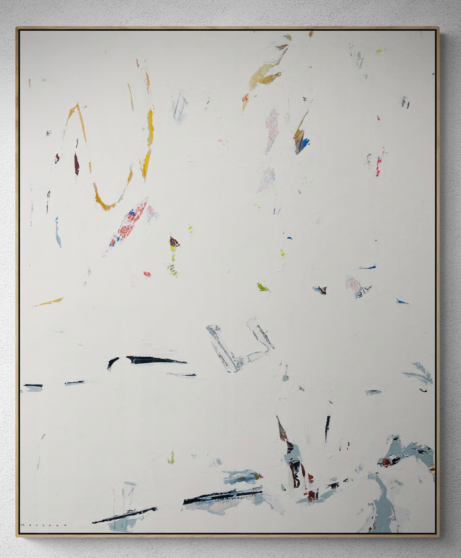 Acrylic, collage, plaster, charcoal, pastels and graphite on canvas