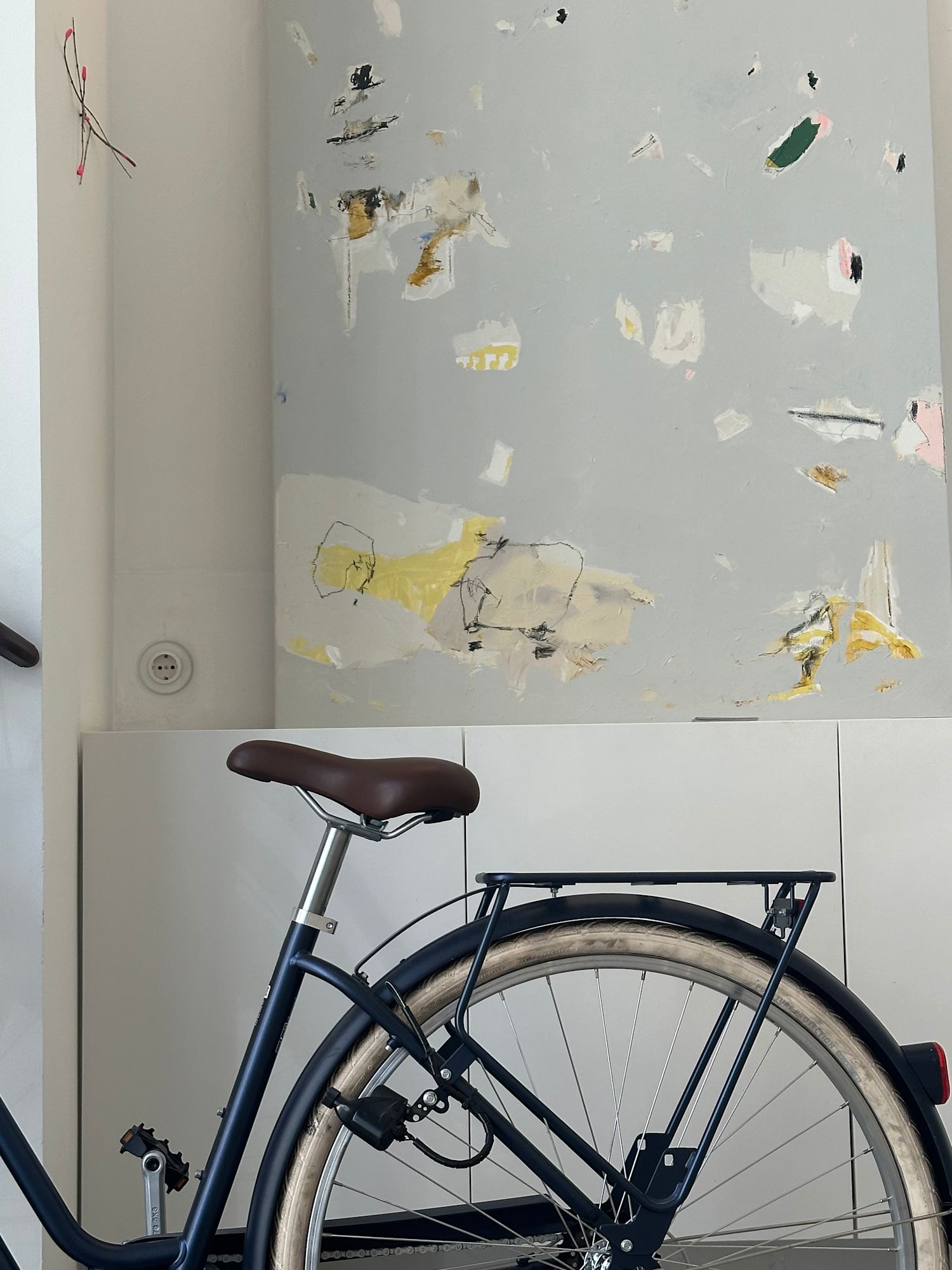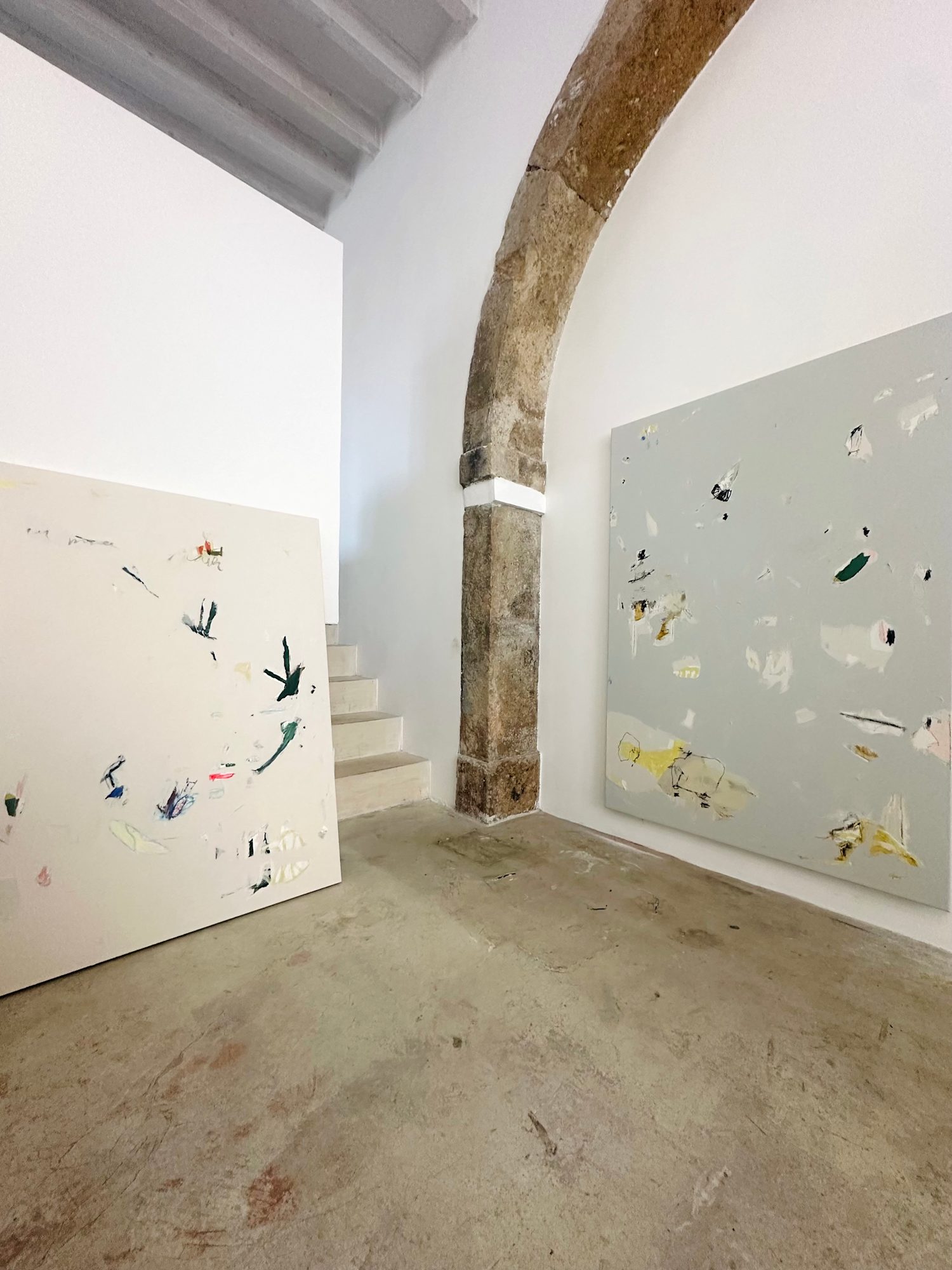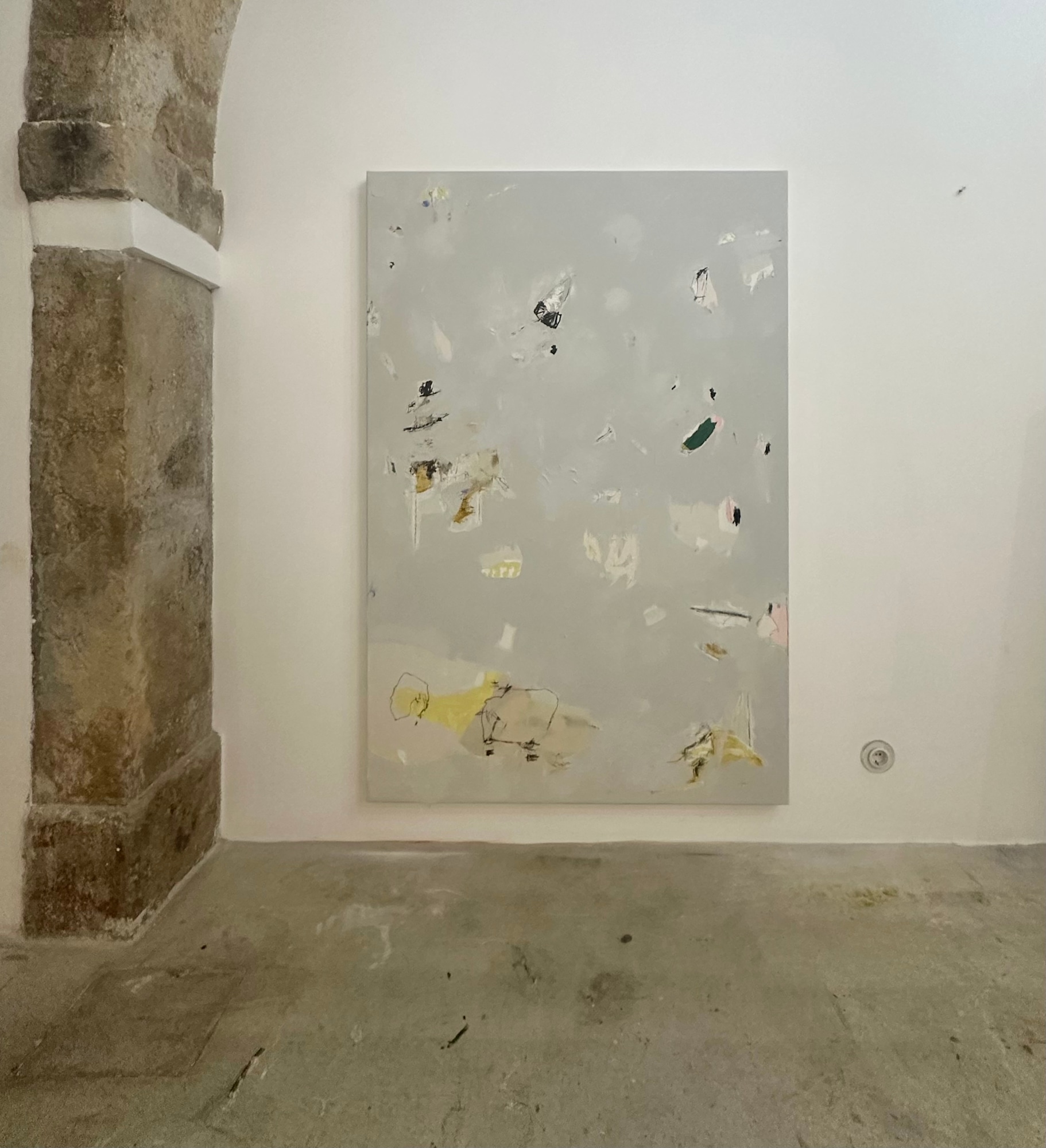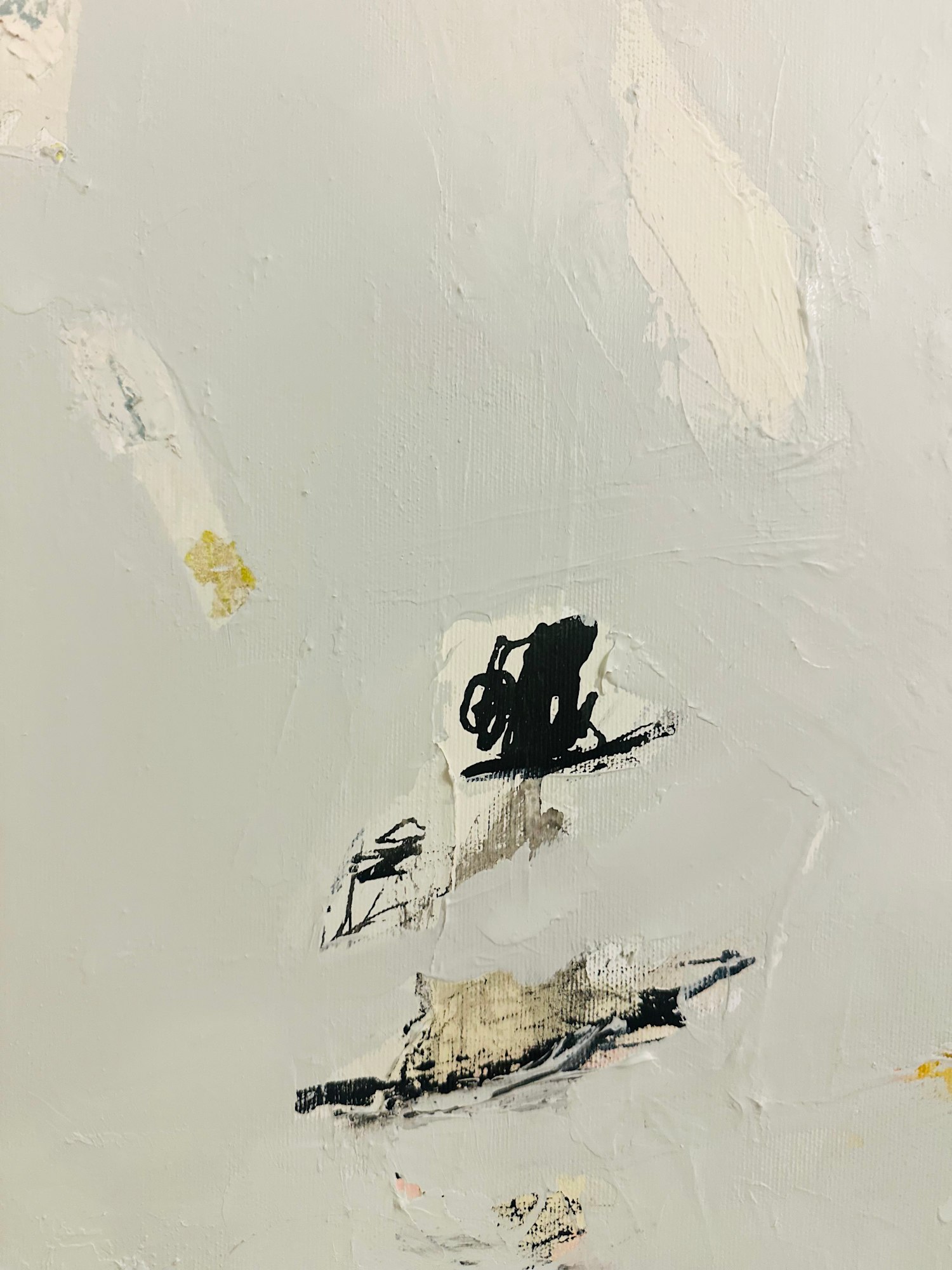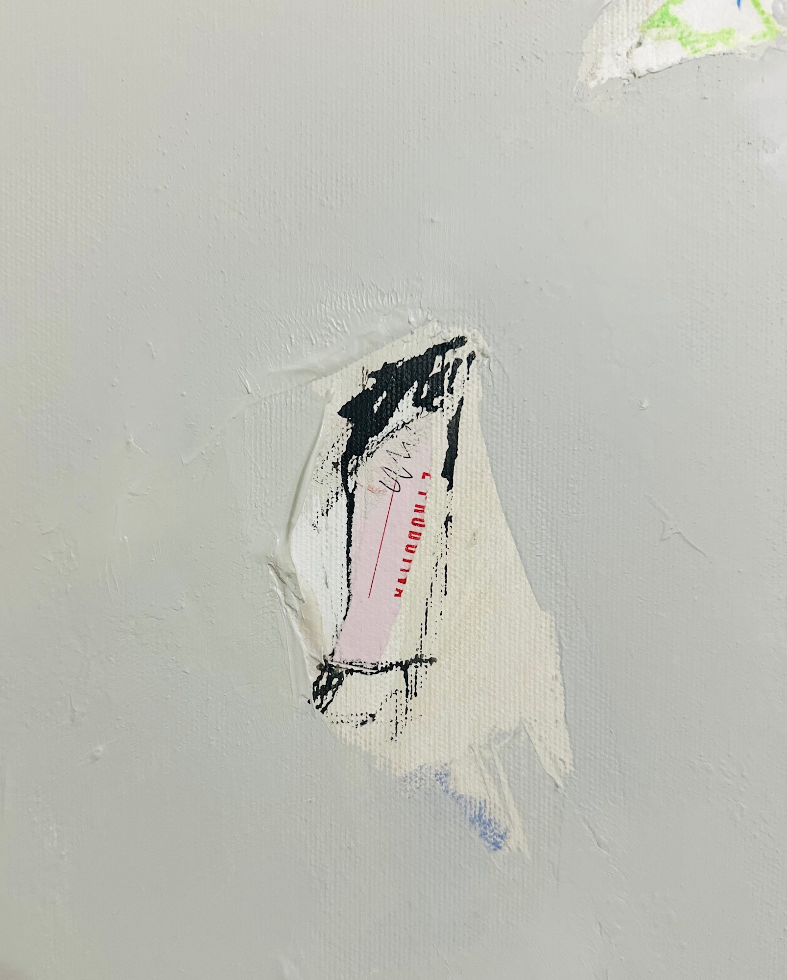 Acrylic, collage, plaster, charcoal, pastels and graphite on canvas