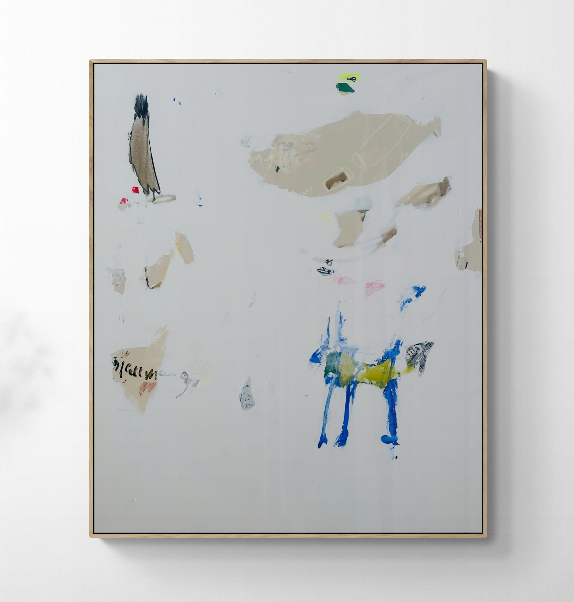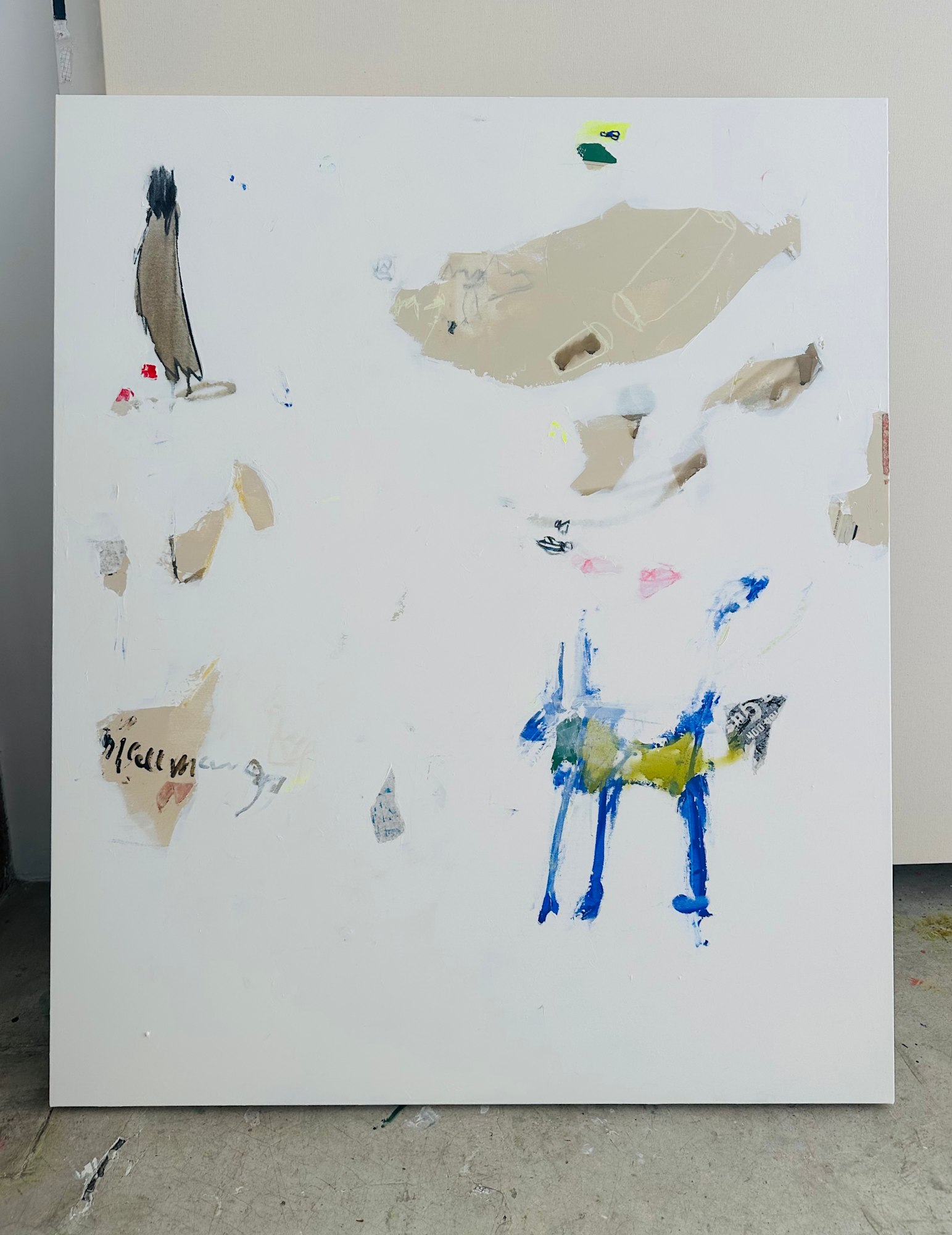 Acrylic, collage, plaster, pigments, charcoal, pastels and graphite on canvas