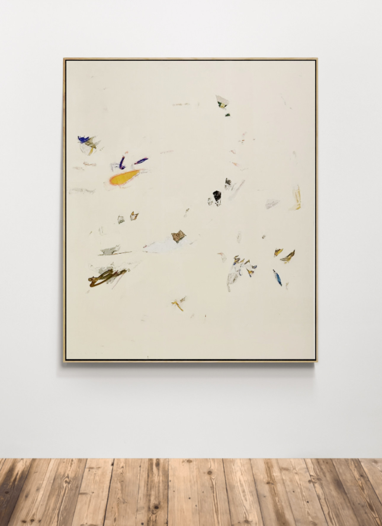 Acrylic, collage, plaster, dirt, charcoal, pastels and graphite on canvas