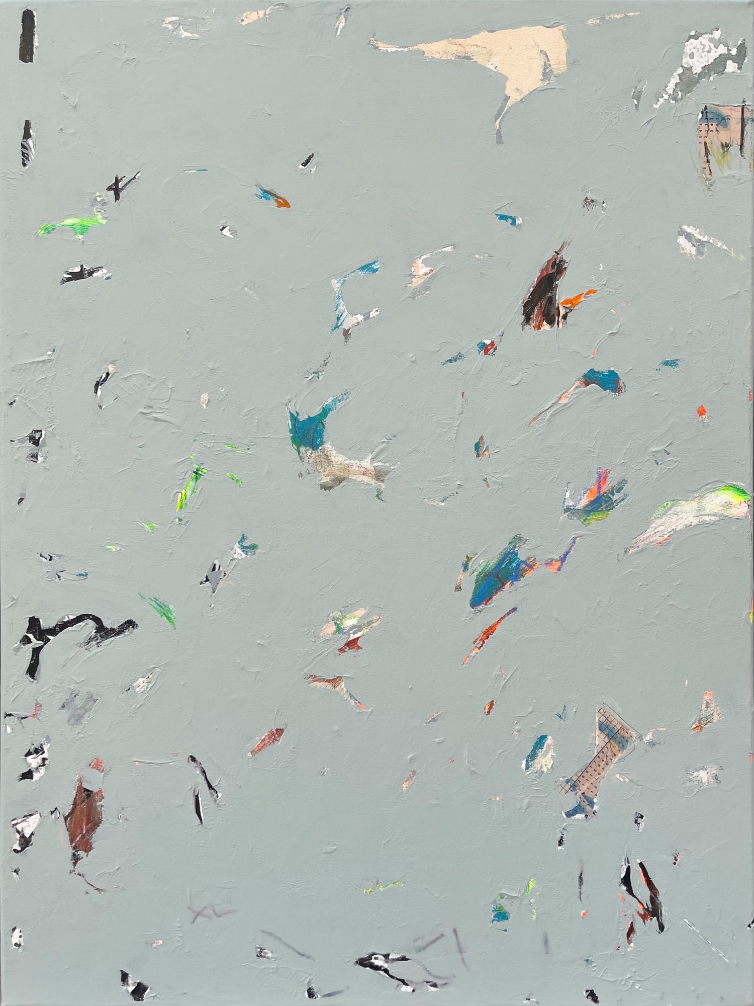 Acrylic, collage, plaster, charcoal, pastels and graphite on canvas