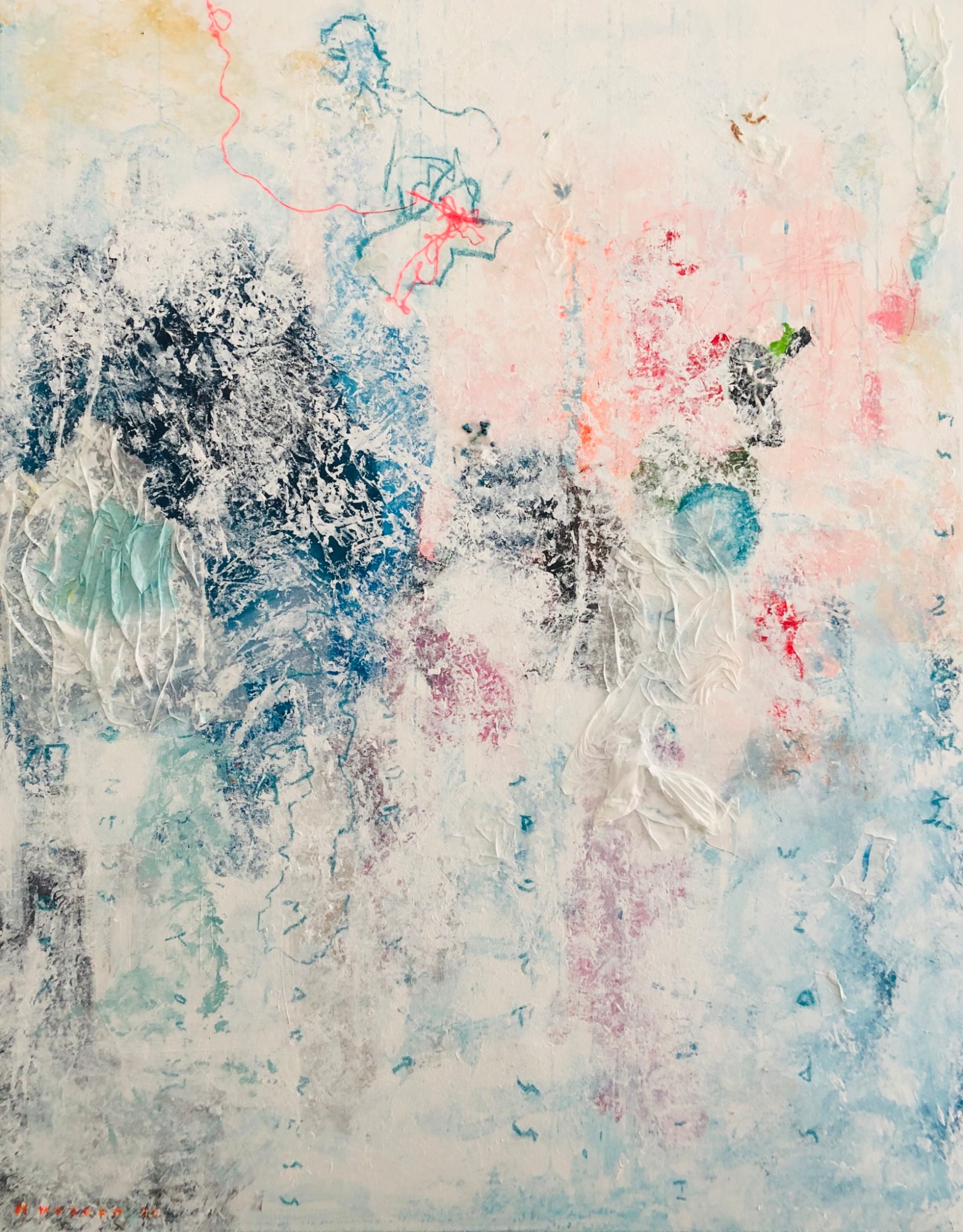 Oil, oil pastel, soft pastel, charcoal, acrylics and collage on canvas