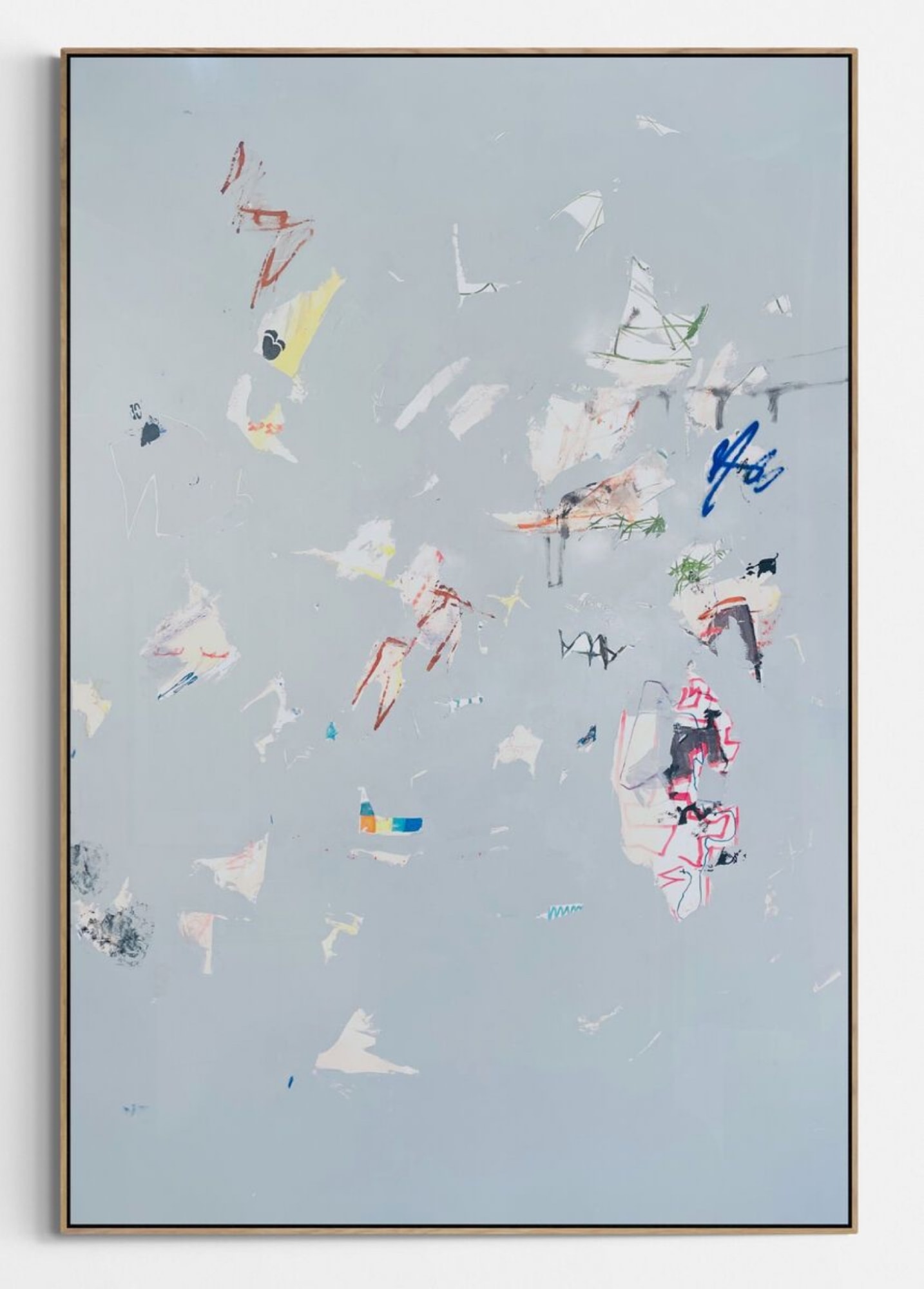 Acrylic, oil, collage, plaster, spray paint, charcoal, pastels and graphite on canvas