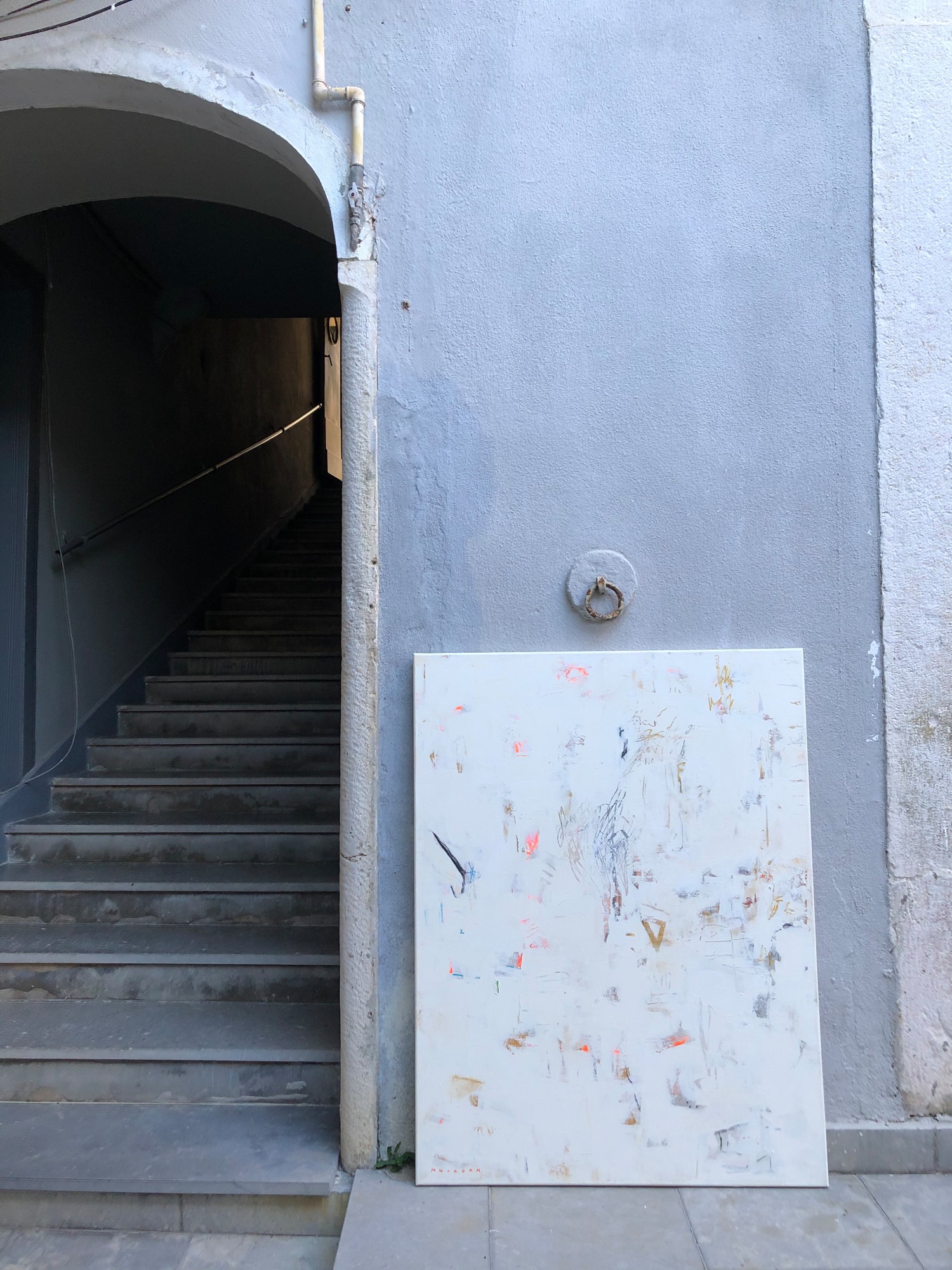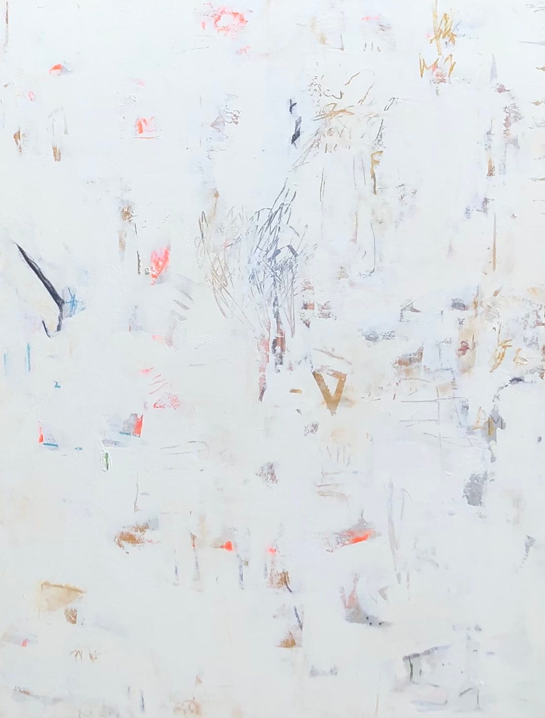 Acrylic, collage, modeling paste, charcoal, pastels and grafite on canvas