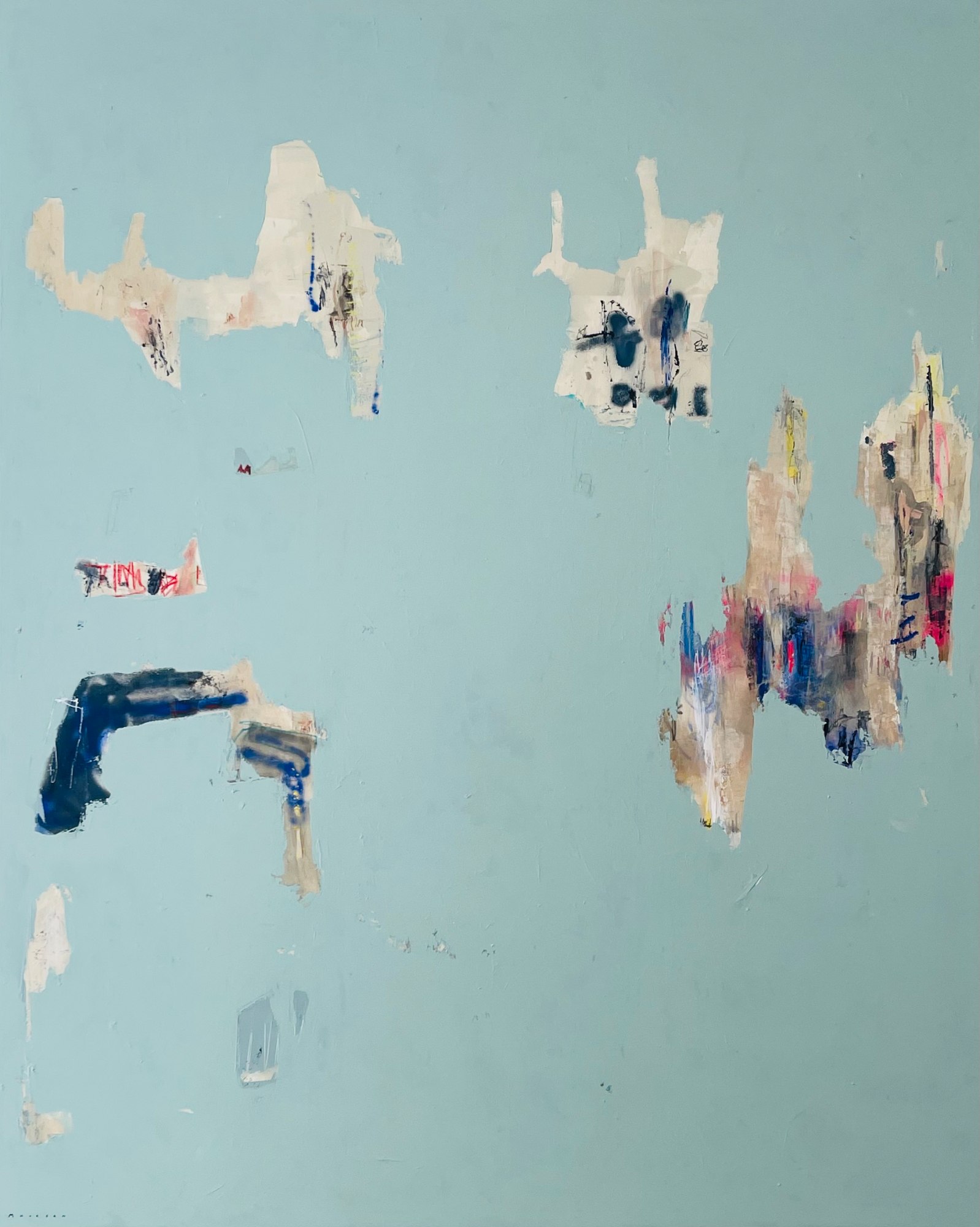 Acrylic, plaster, dirt, spray paint, pigments, ink, pastels, pencils, charcoal and graphite on canvas