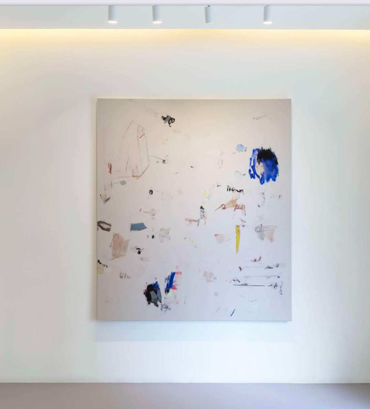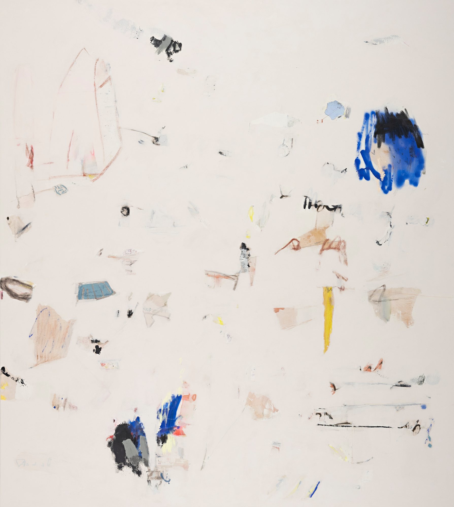 Acrylic, oil, collage, plaster, spray paint, dirt, dry mushroom (daldinia concentrica), charcoal, pastels, pigments and graphite on canvas