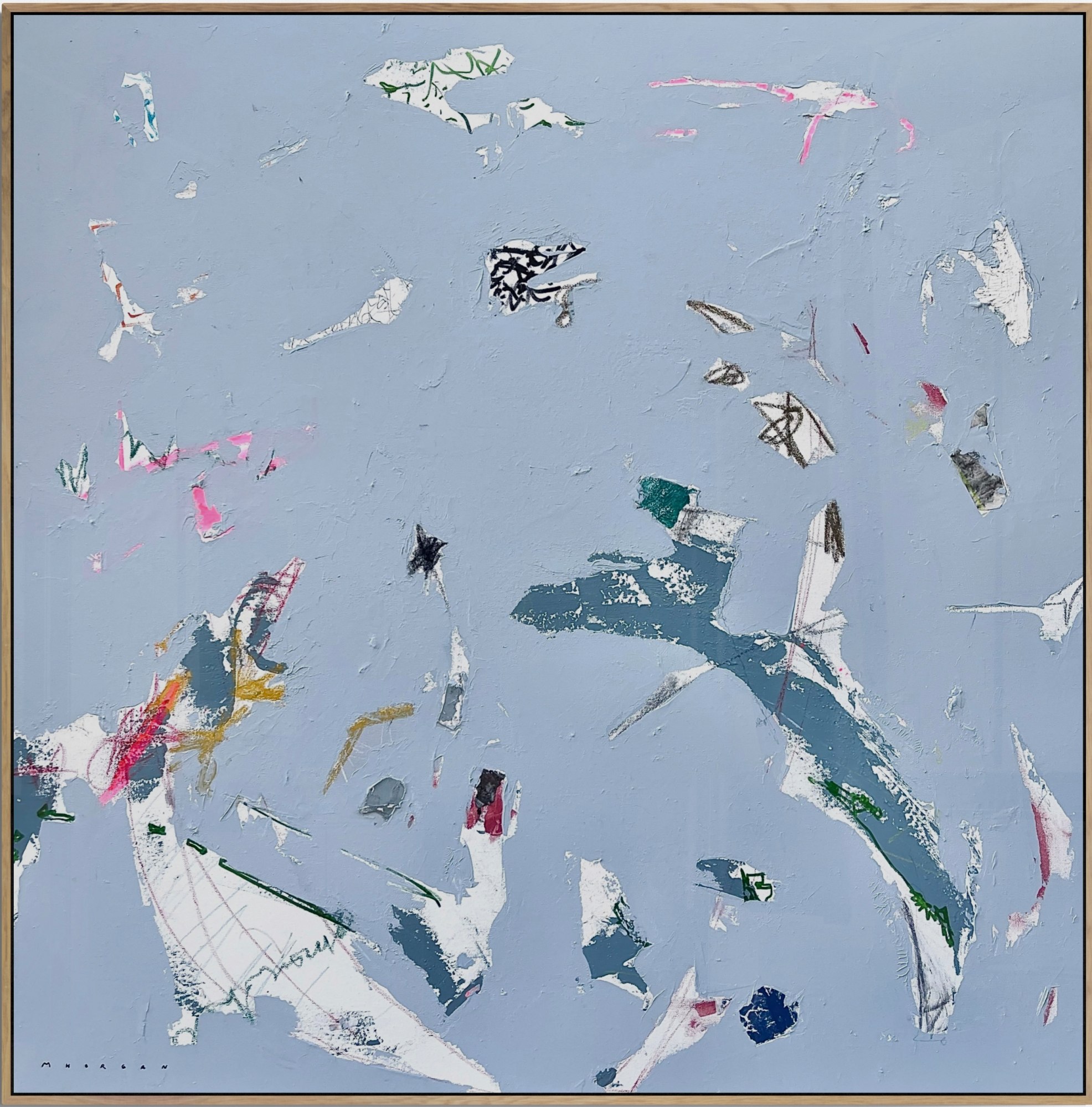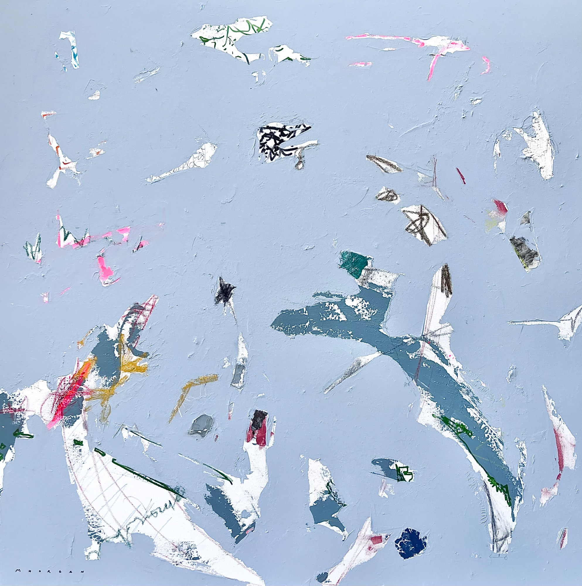 Acrylic, China ink, collage, plaster, charcoal, pastels and graphite on canvas
