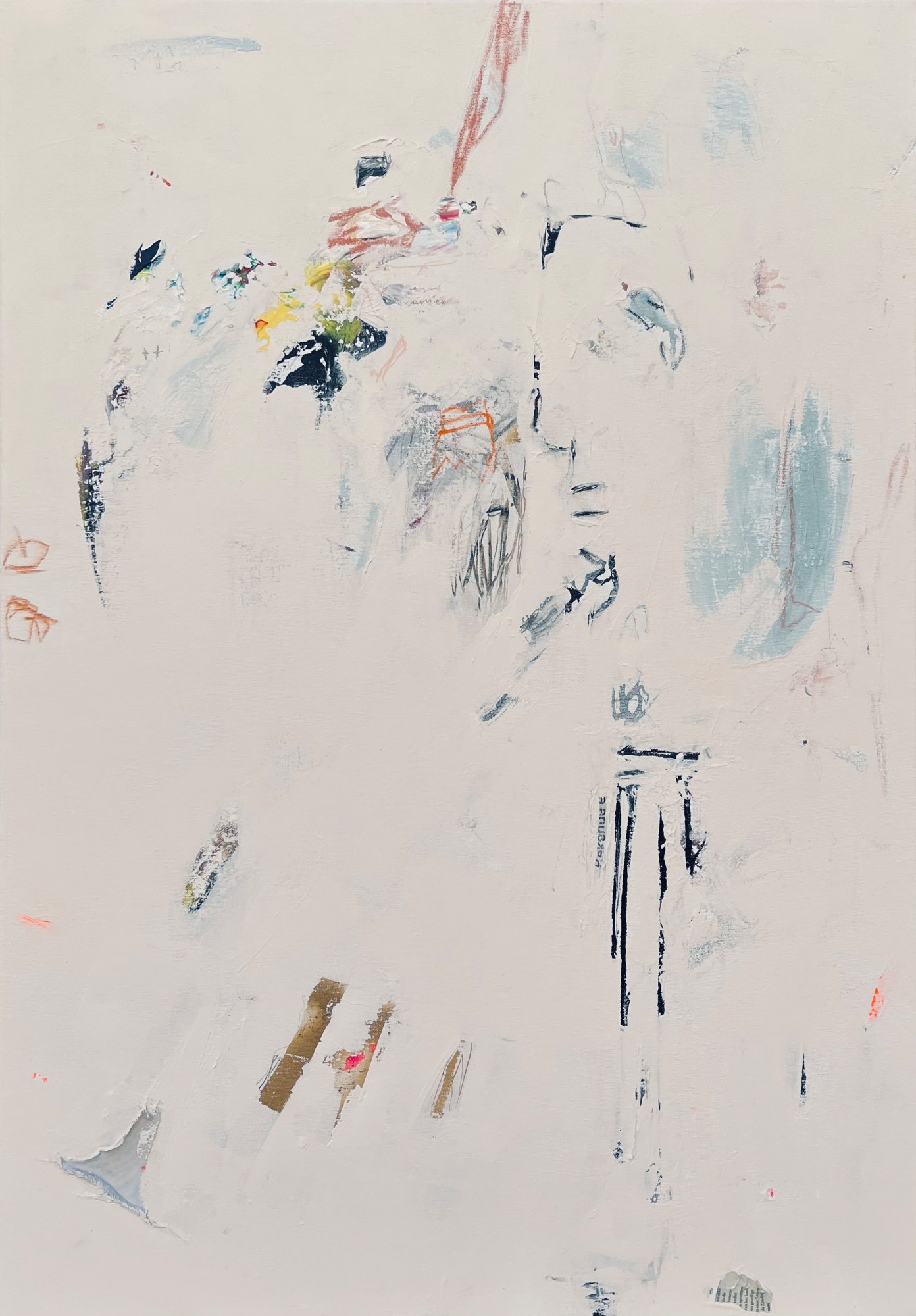 Acrylic, spray paint, plaster, cement, collage, crayons, pastels and graphite on canvas