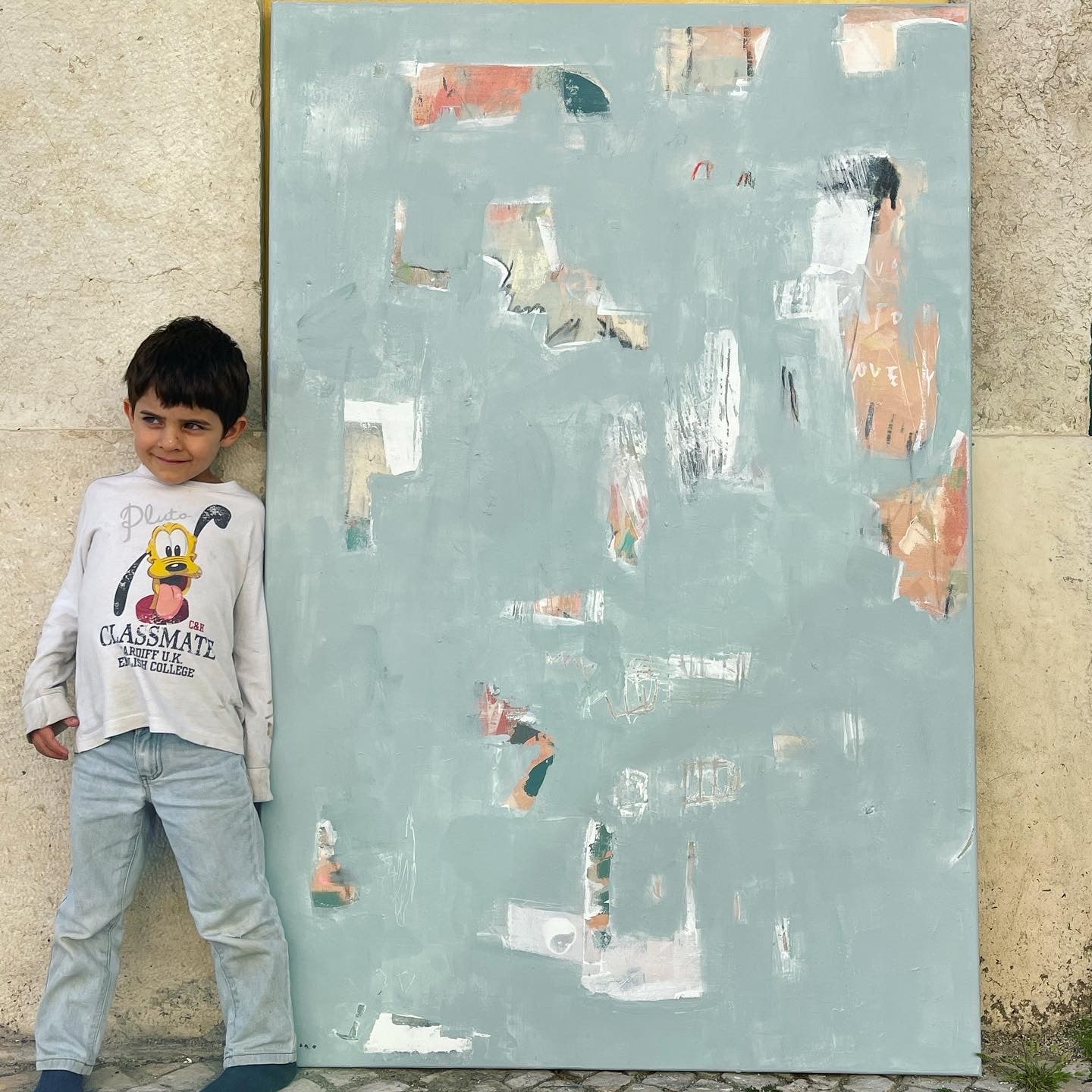 Acrylic, plaster, dirt, collage, pastel, charcoal, pencil and graphite on canvas