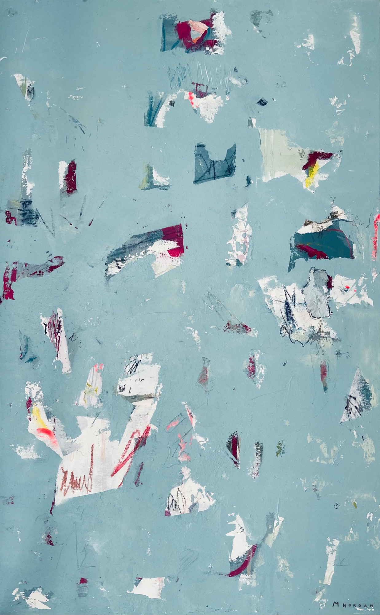 Acrylic, gesso, collage, pastel, charcoal and pencil on canvas