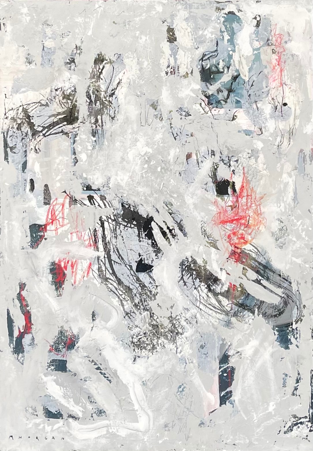 Acrylic, China ink, collage, modeling paste, charcoal, pastels and graphite on canvas