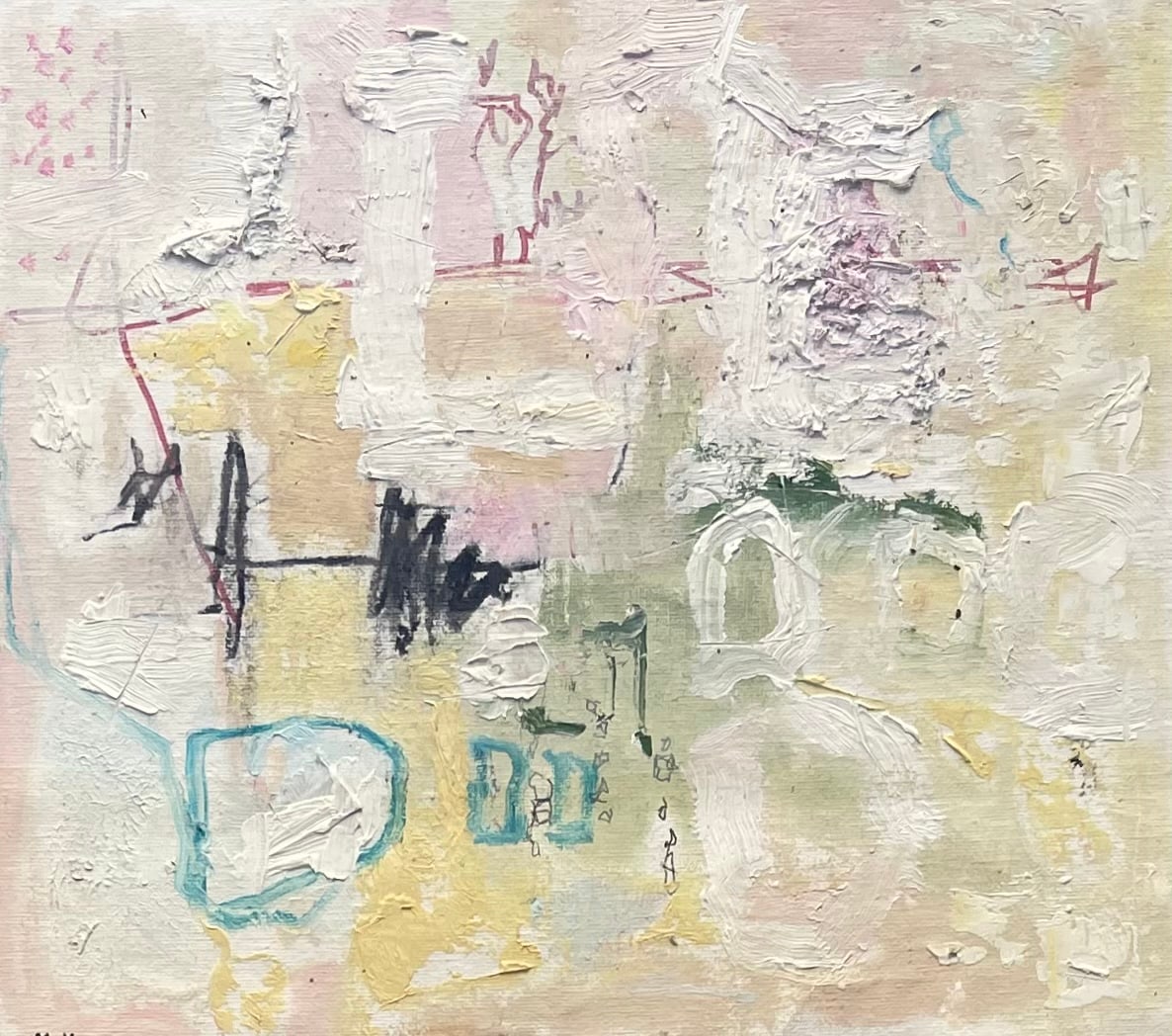 Oil, acrylic, dirt, dry leaves, pastel and charcoal on canvas shred