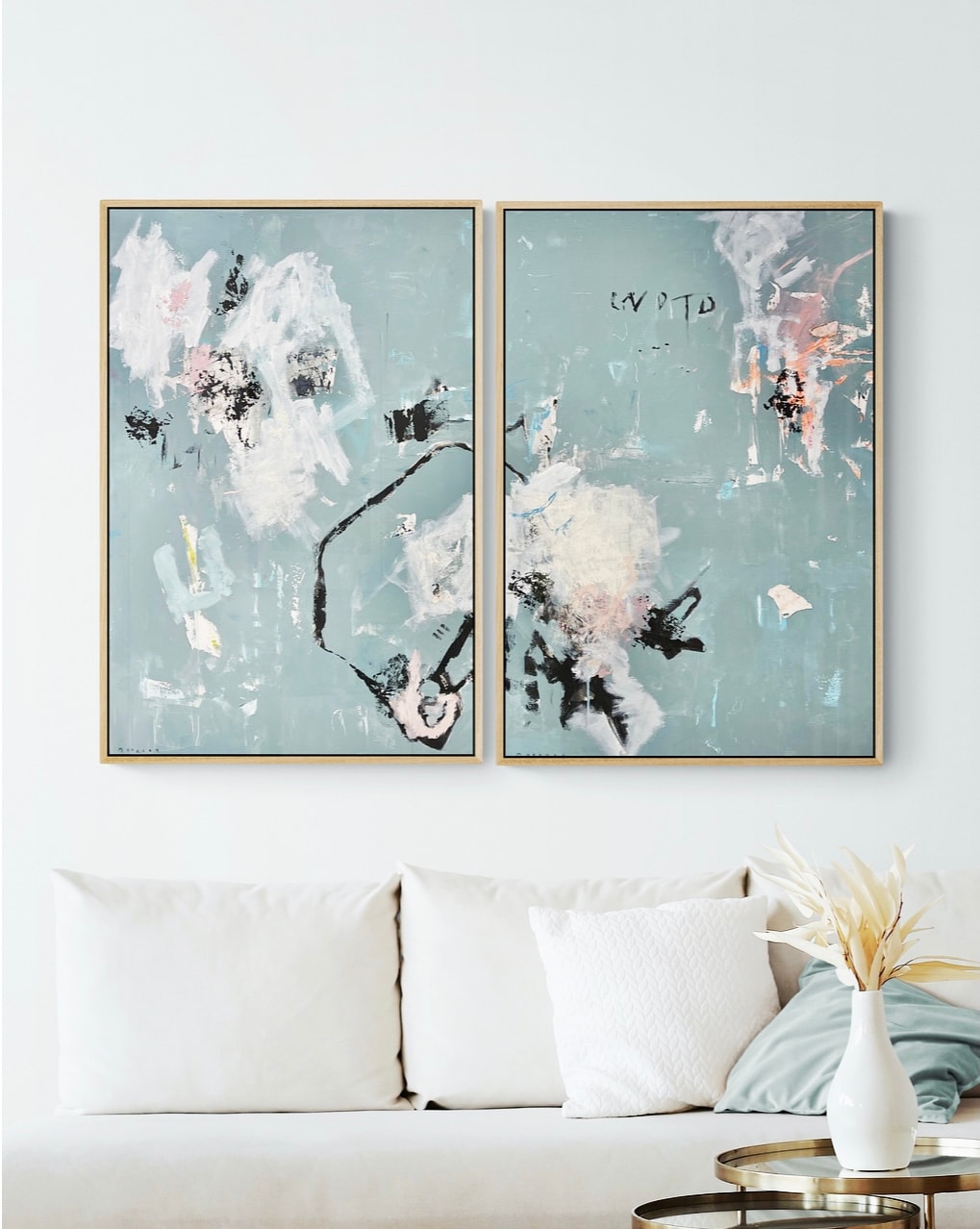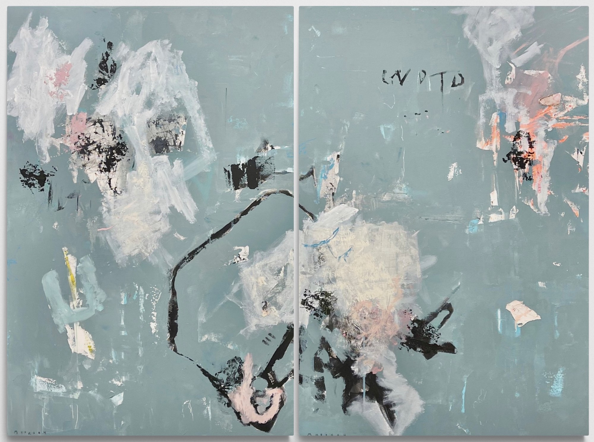 Acrylic, pastel, charcoal, collage and china ink on canvas
