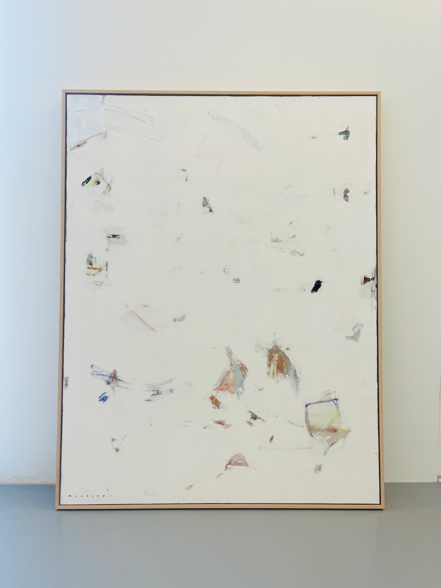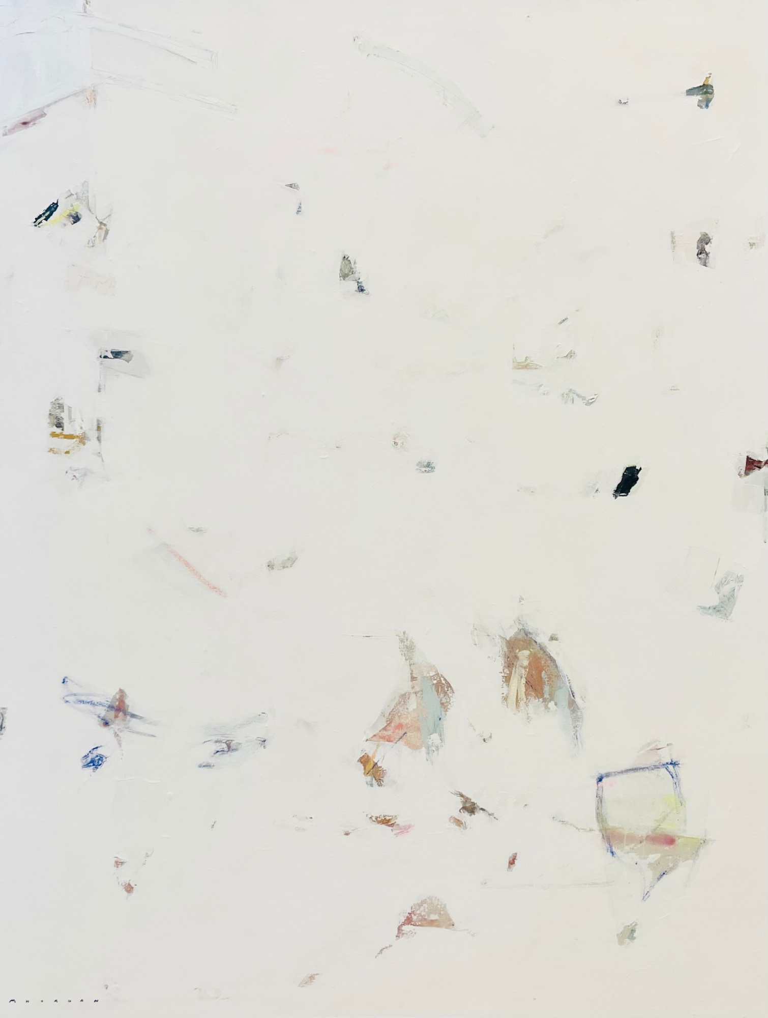 Acrylic, collage, plaster, charcoal, pastels and graphite on canvas