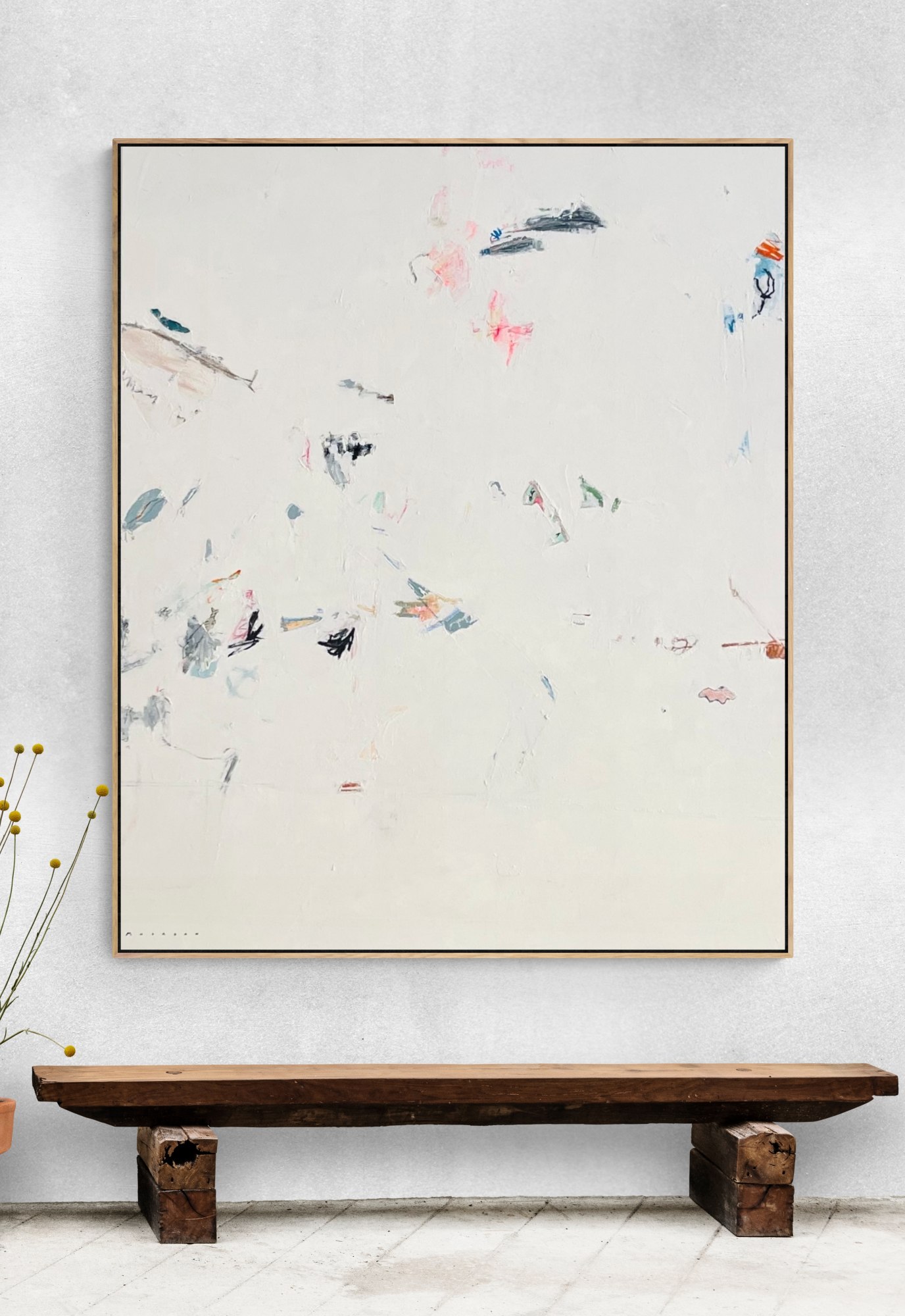 Acrylic, collage, plaster, charcoal, pastels and graphite on canvas