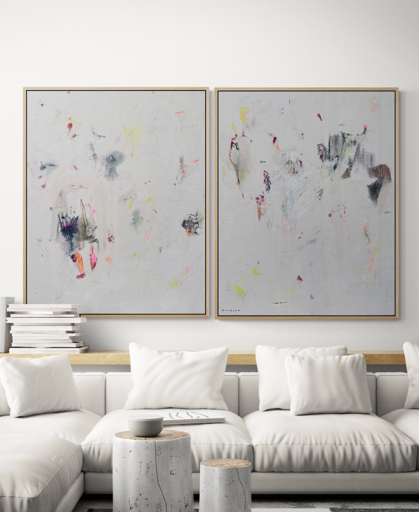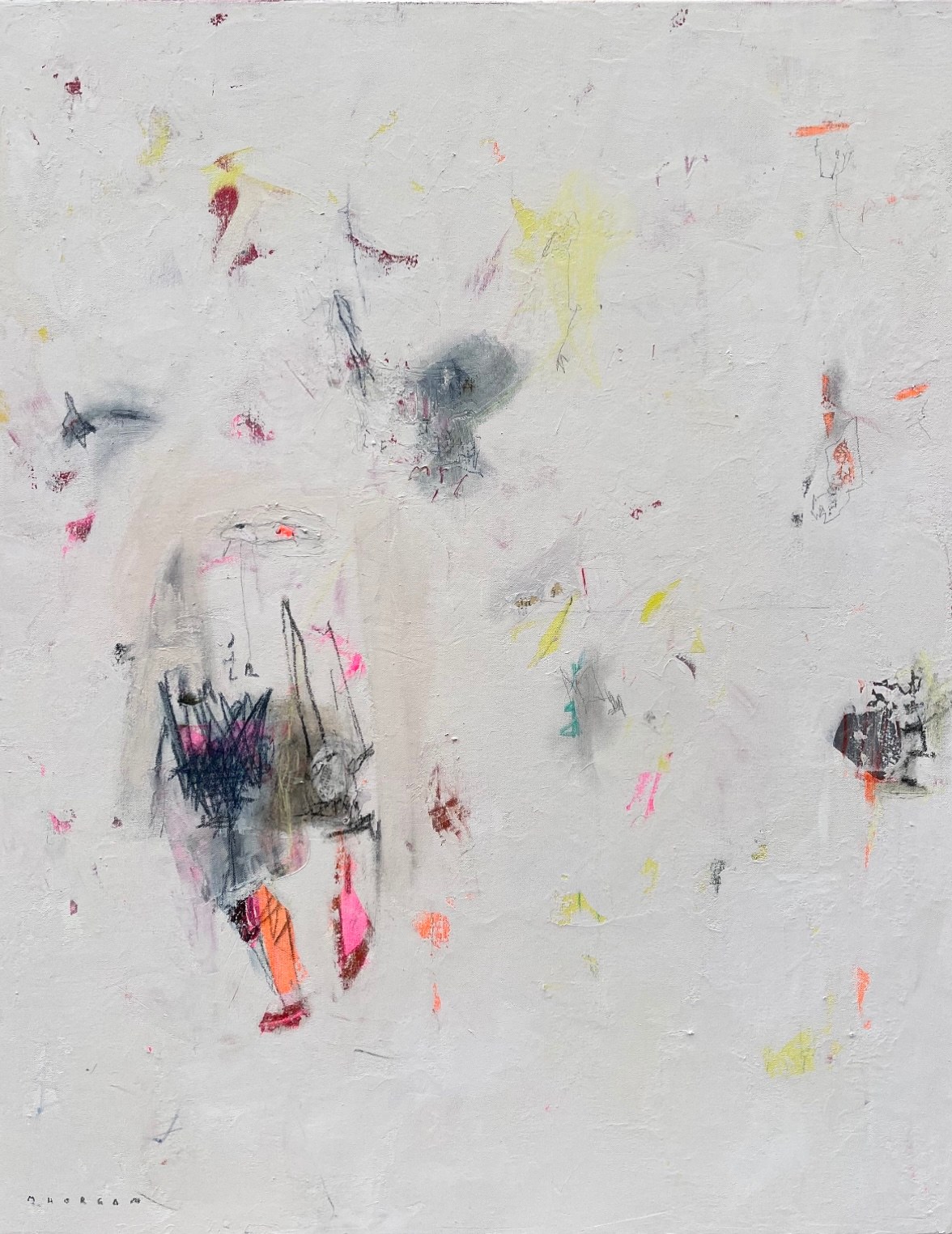 Acrylics, collage, sand, sandpaper, cement, plaster, pastels, charcoal and graphite on canvas
