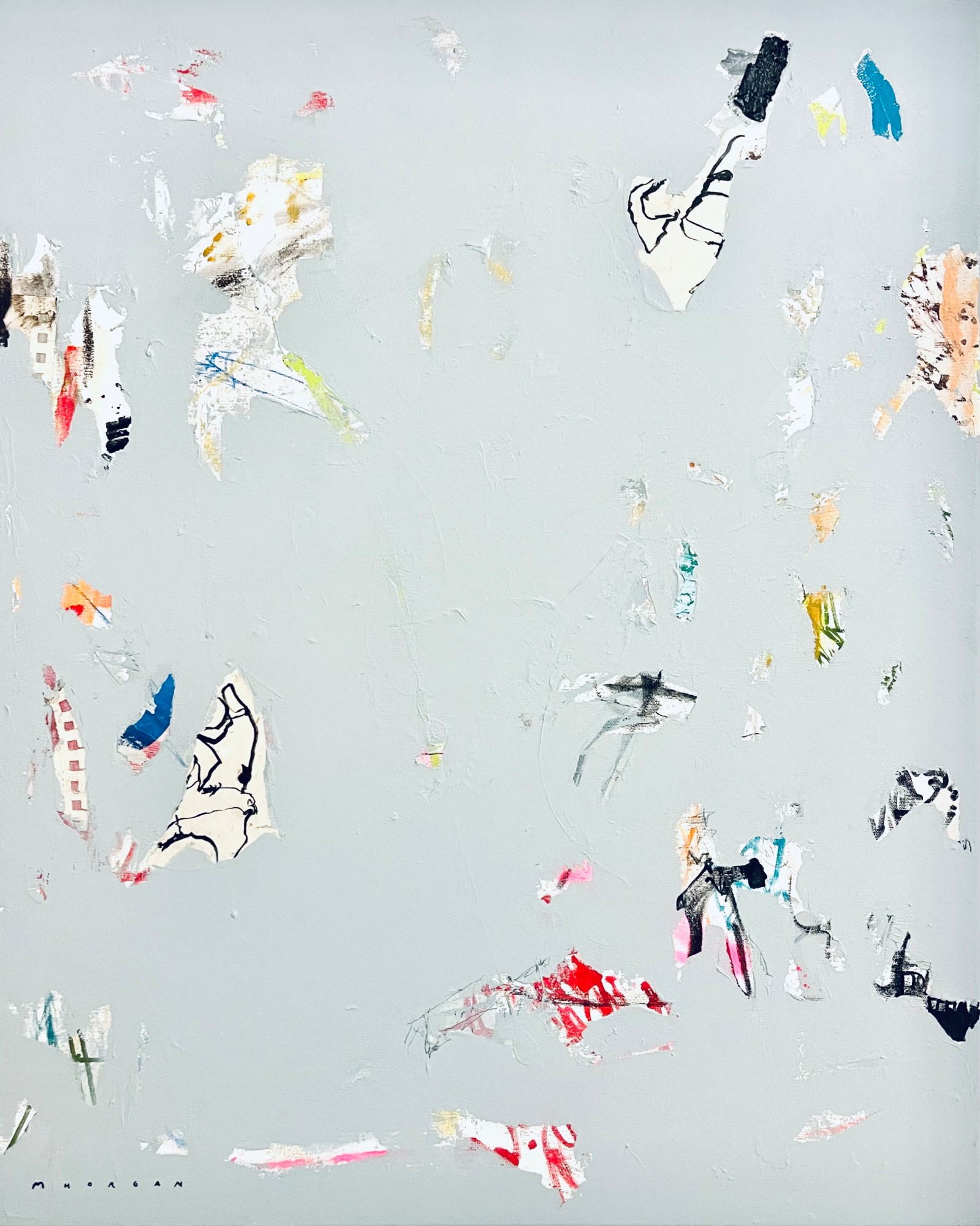 Acrylic, plaster, collage, china ink, pastel, charcoal and graphite on canvas