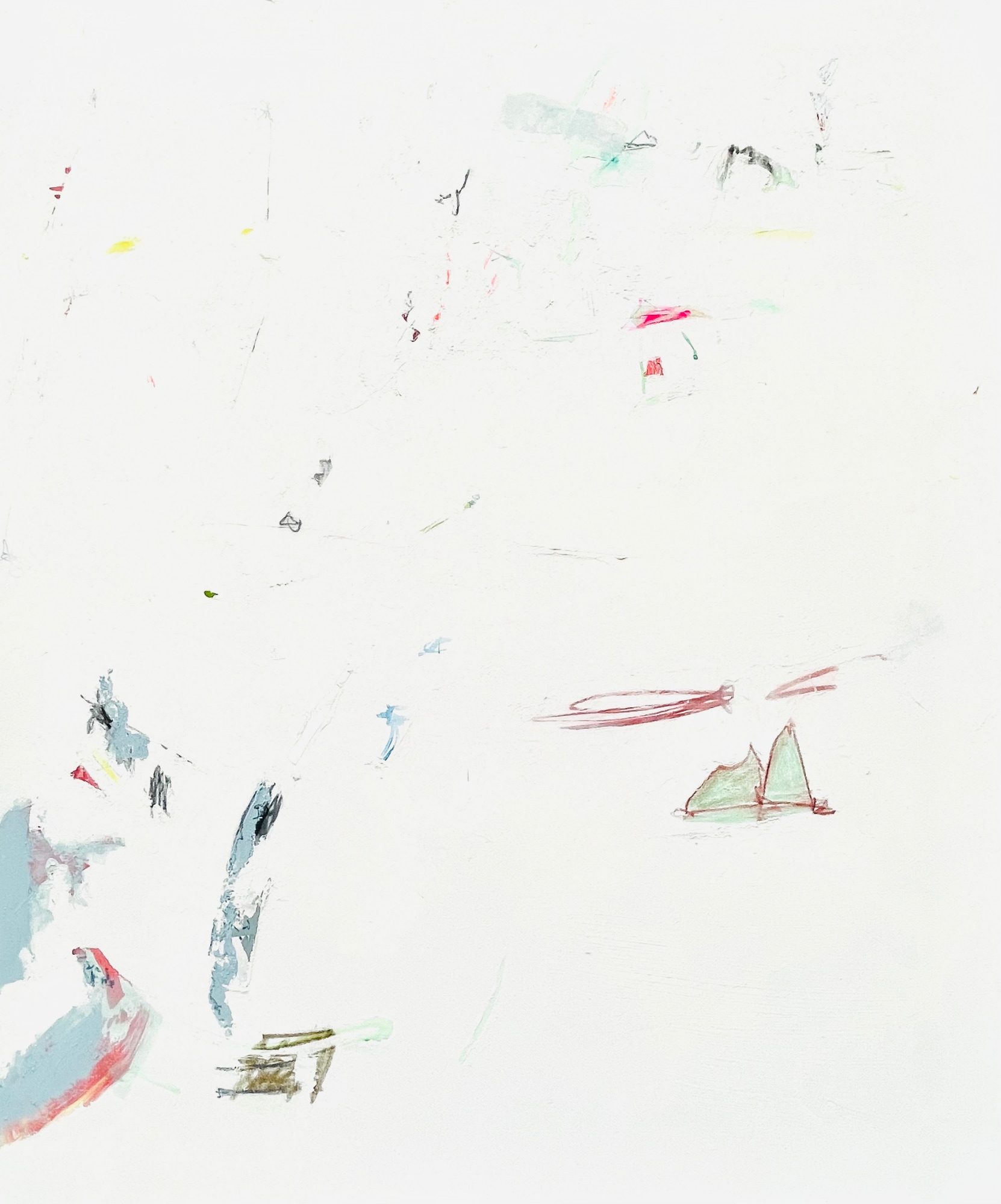 Acrylic, plaster, cement, collage, pastels, charcoal and graphite on canvas