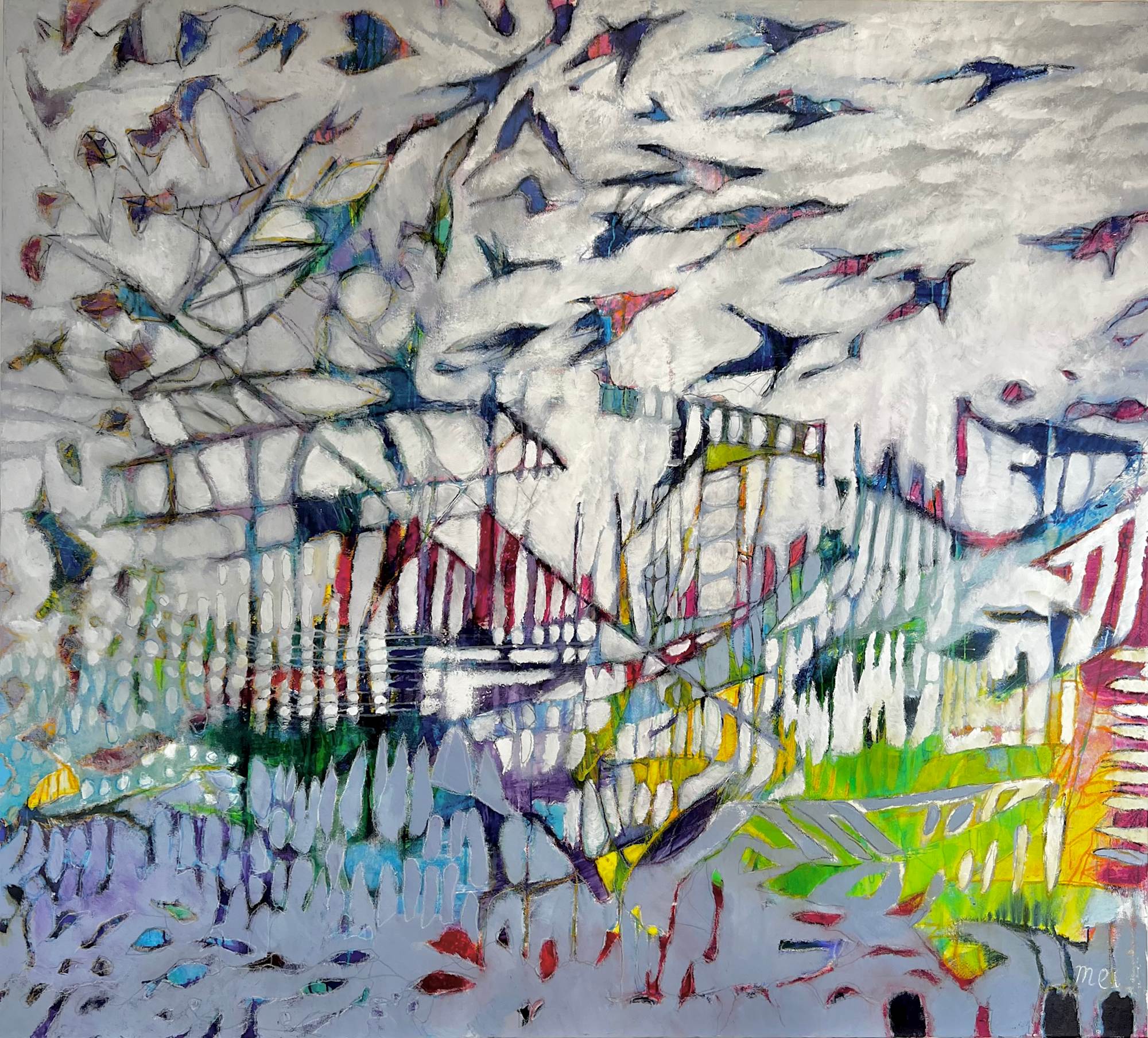 Acrylic, chalk, ink, pastel and china marker on canvas