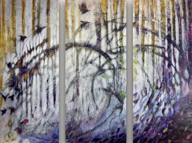 Acrylic, chalk, charcoal, ink, pastel and china marker on canvas