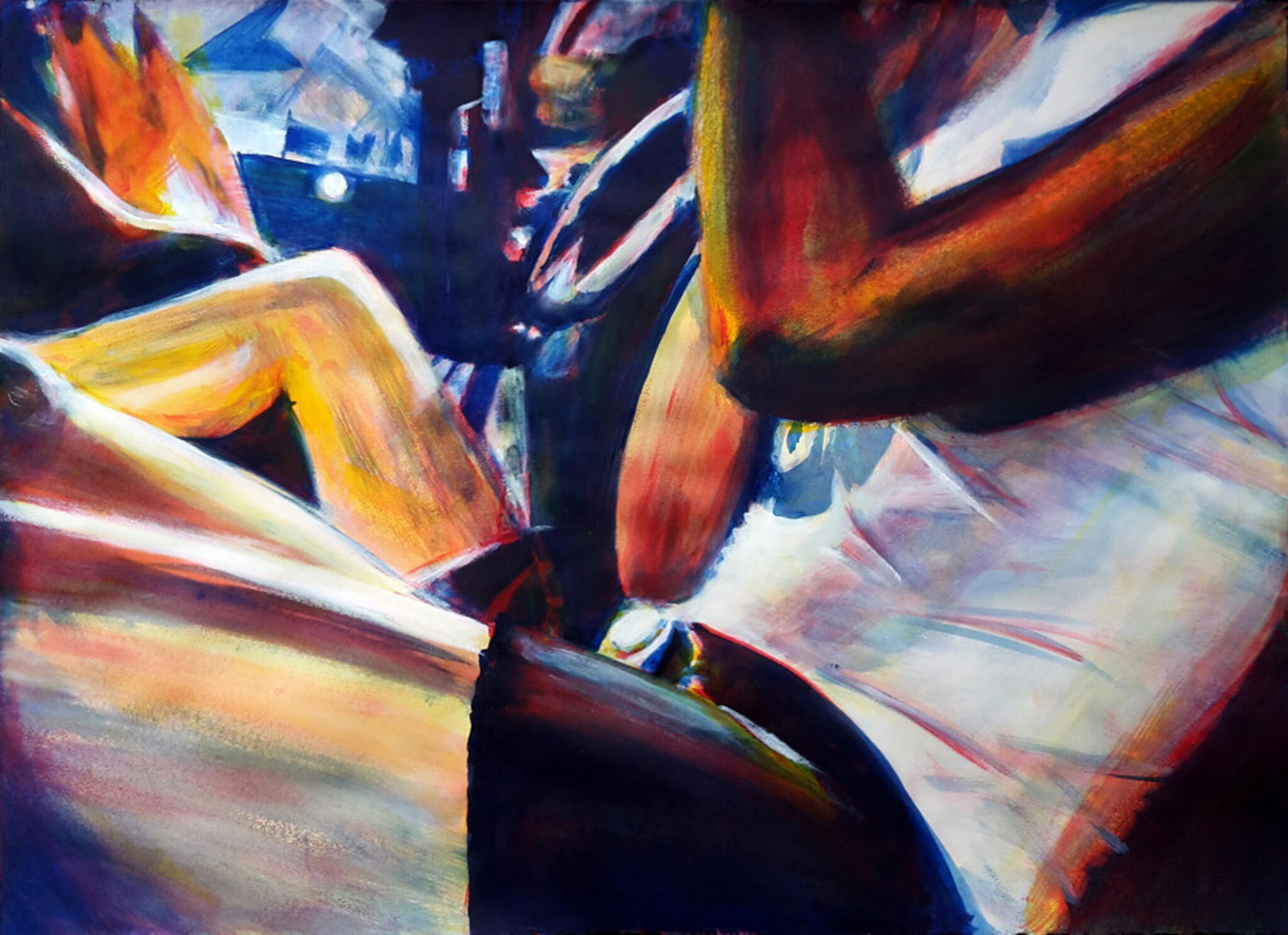 Arrêts sur image peints du film ” Death Proof ” de Quentin Tarantino. Le spectateur devient la tête de lecture, se crée son propre film face aux oeuvres.