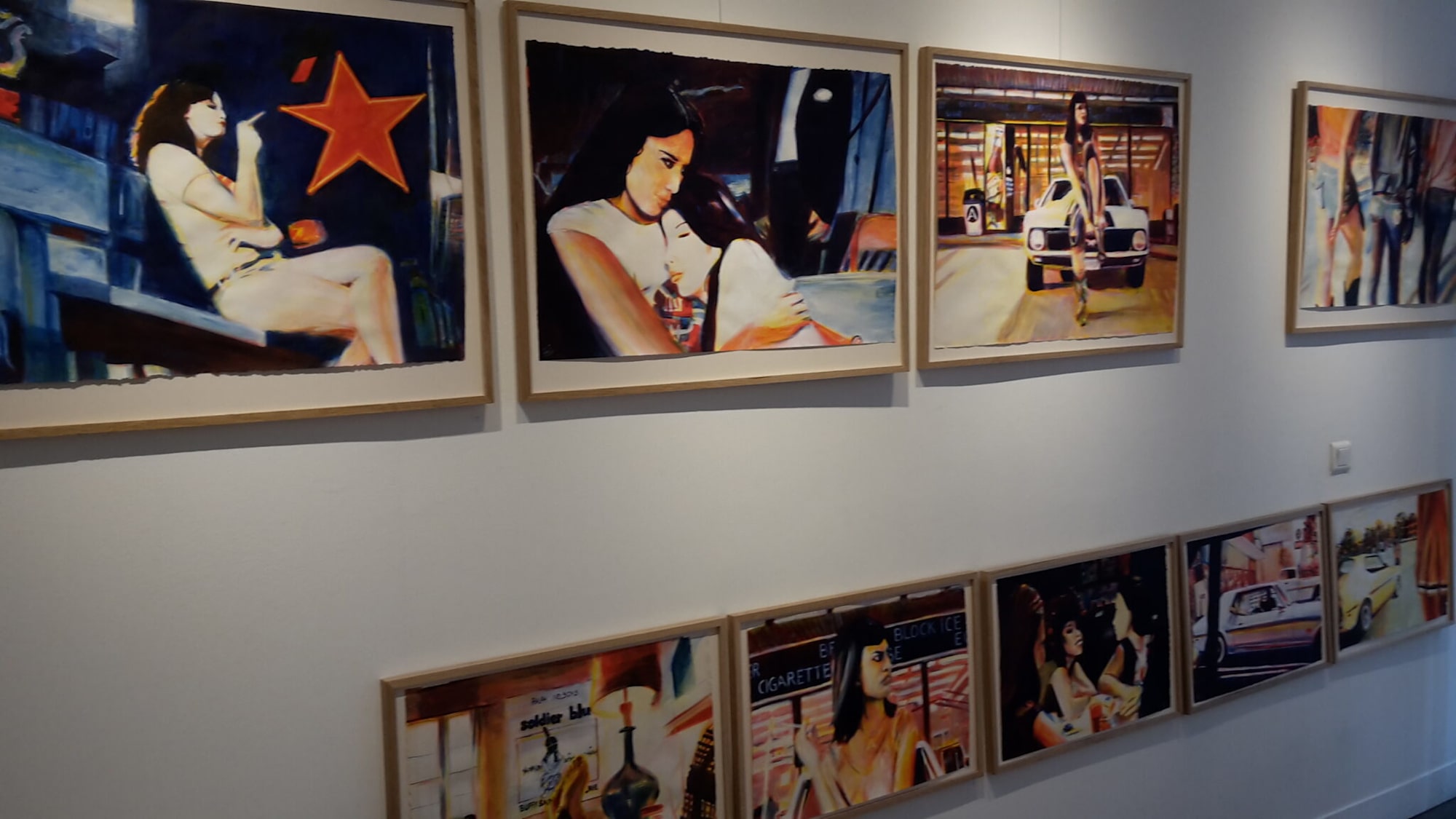 Arrêts sur image peints du film ” Death Proof ” de Quentin Tarantino. Le spectateur devient la tête de lecture, se crée son propre film face aux oeuvres. Cette série représente la liberté féminine.