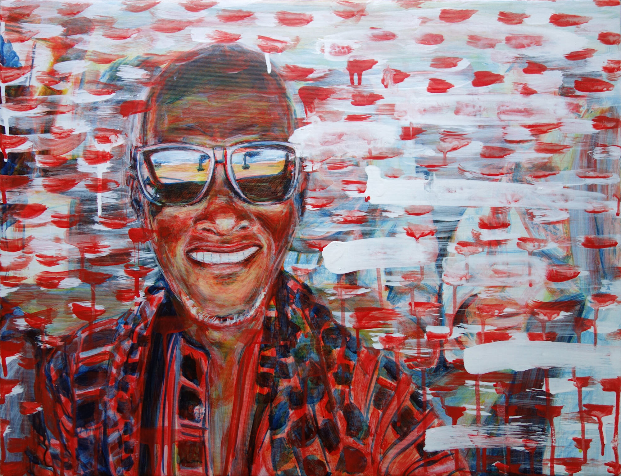 Réalisée au 59 Rivoli, cette toile inspirée d’une capture d’écran de l’émission Grands reportages. J’ai réinterprété l’ensemble pour représenter la joie, et la force mentale.
