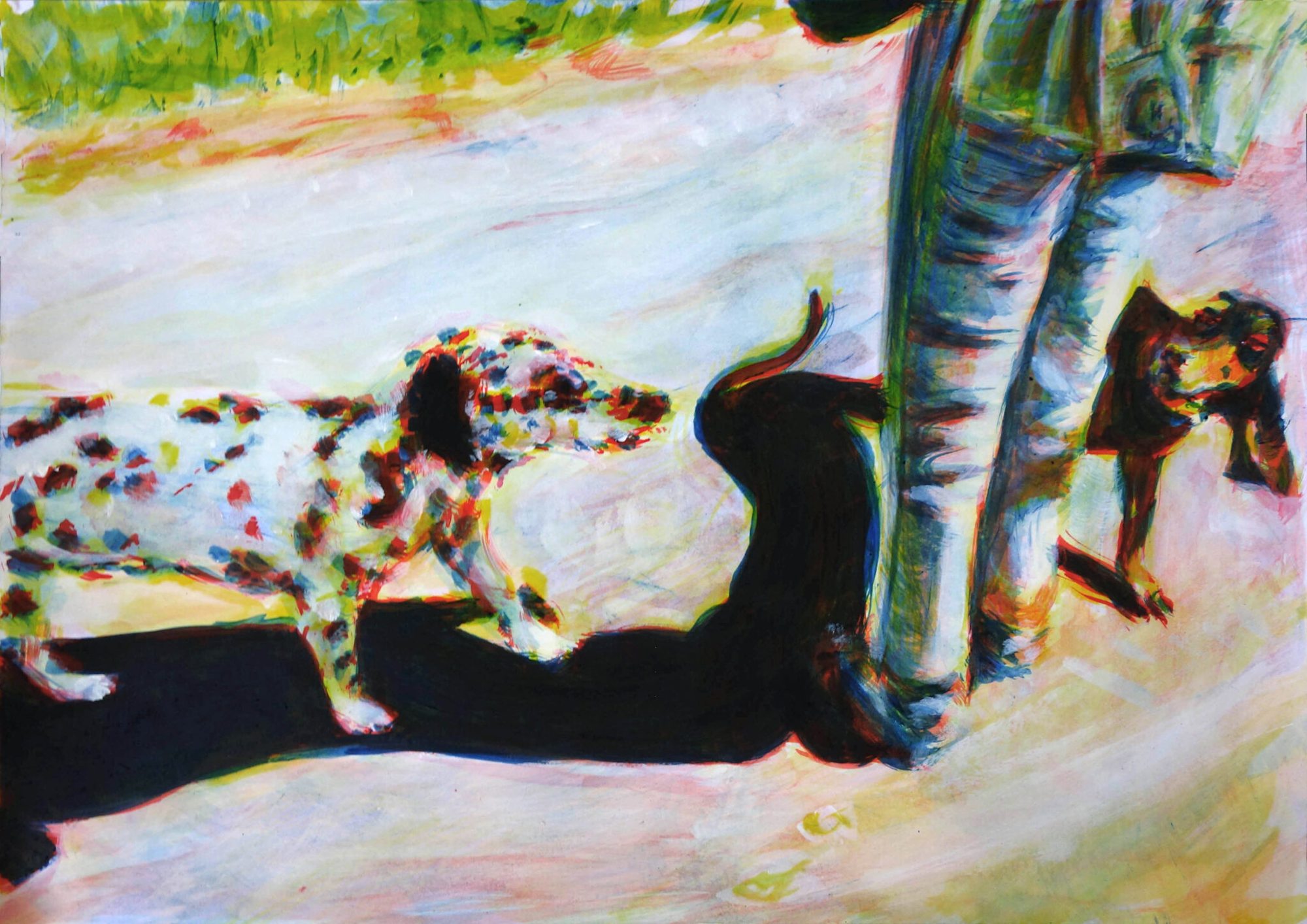 Lors de randonnées j’ai pris des photos qui ont inspirée cette série. L’idée est de décrire la vie entre l’homme et la nature. Ici c’est la rencontre avec l’animal qui est à l’oeuvre.