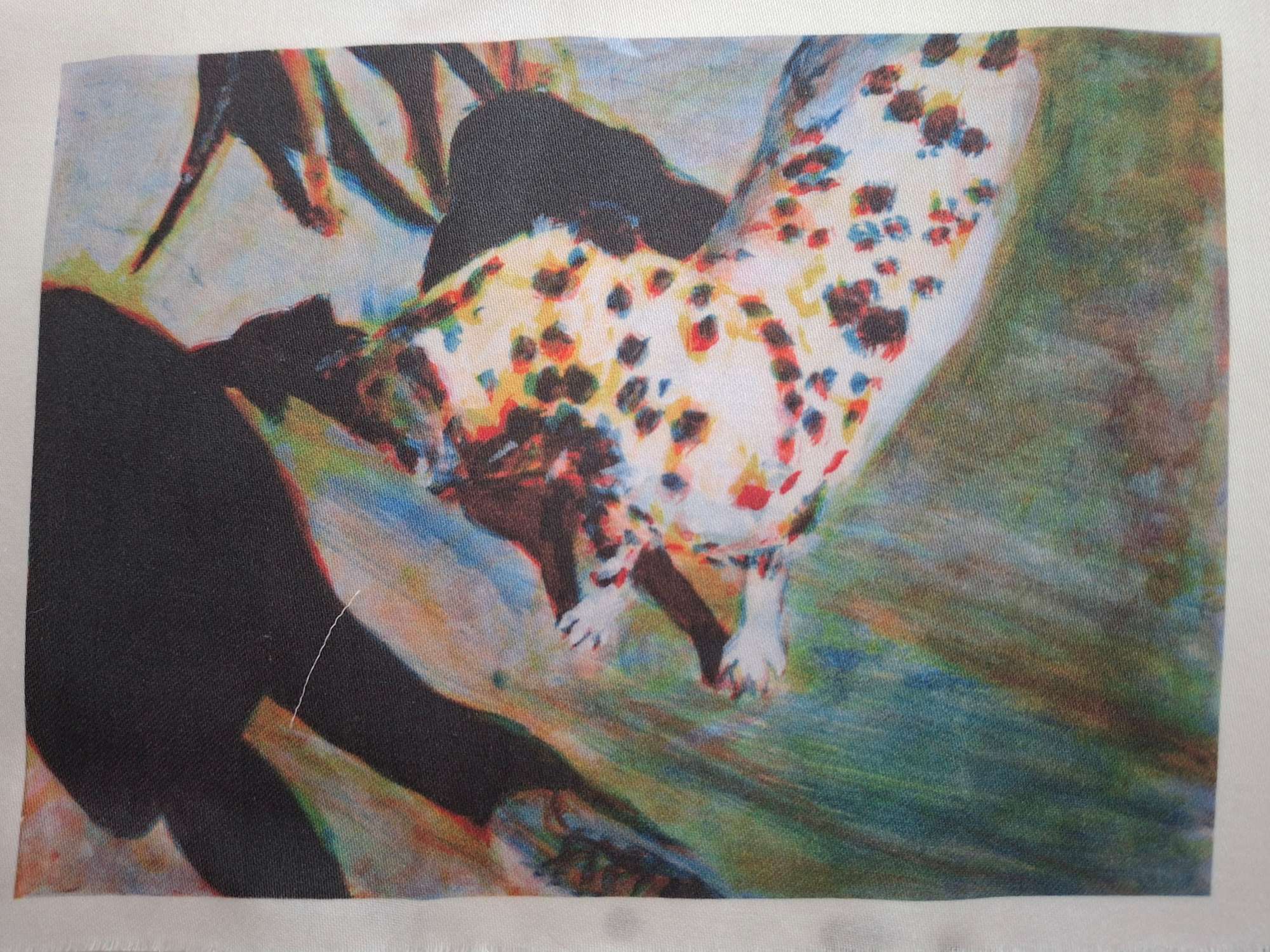 Reproduction 2 exemplaires de peintures de la sériePuy-de-Dôme, sur tissu écologique à l'encre à l'eau. 1 a été offert.