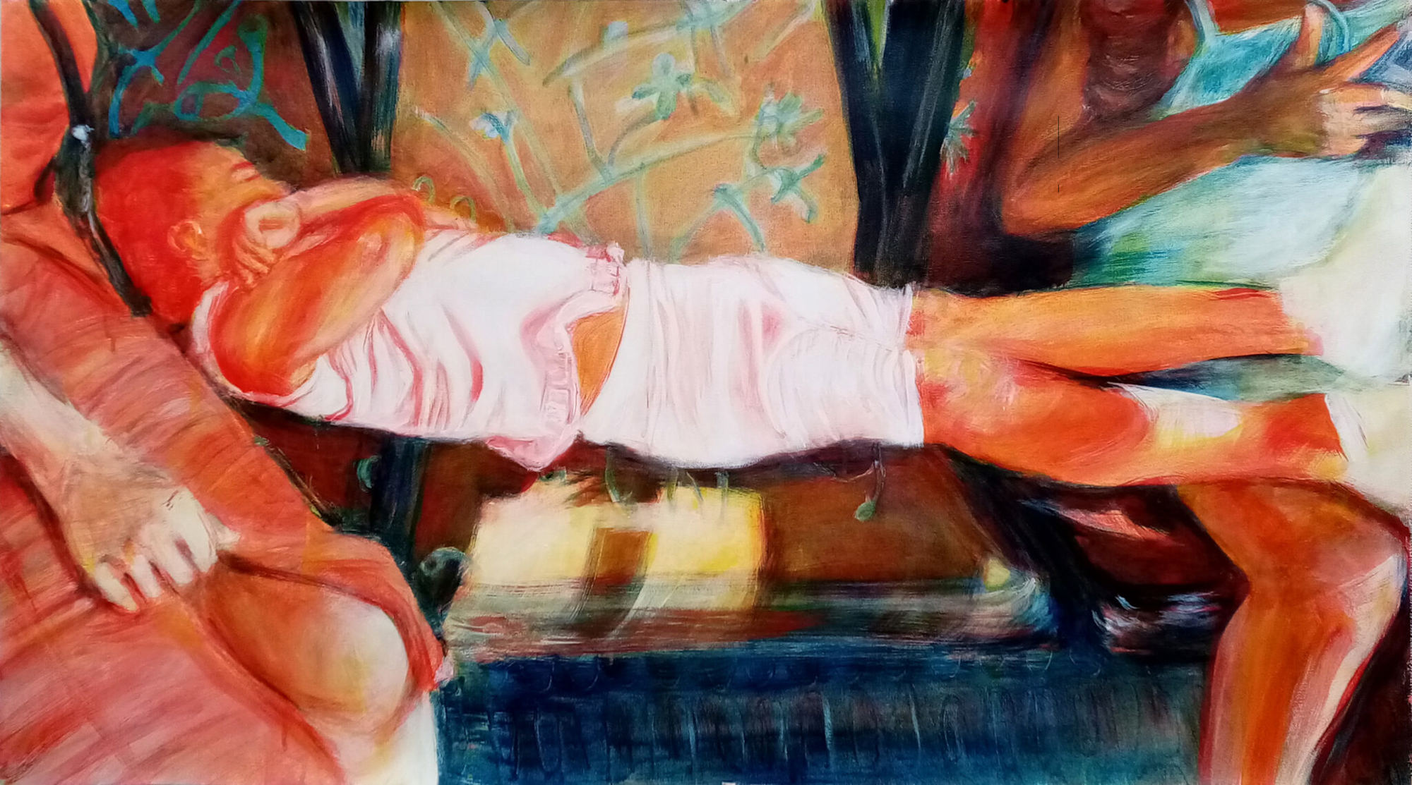 Cette oeuvre m’a été inspirée par une photo prise dans le RER. J’ai été saisie par la quiétude qui se dégageait de la scène sous mes yeux.