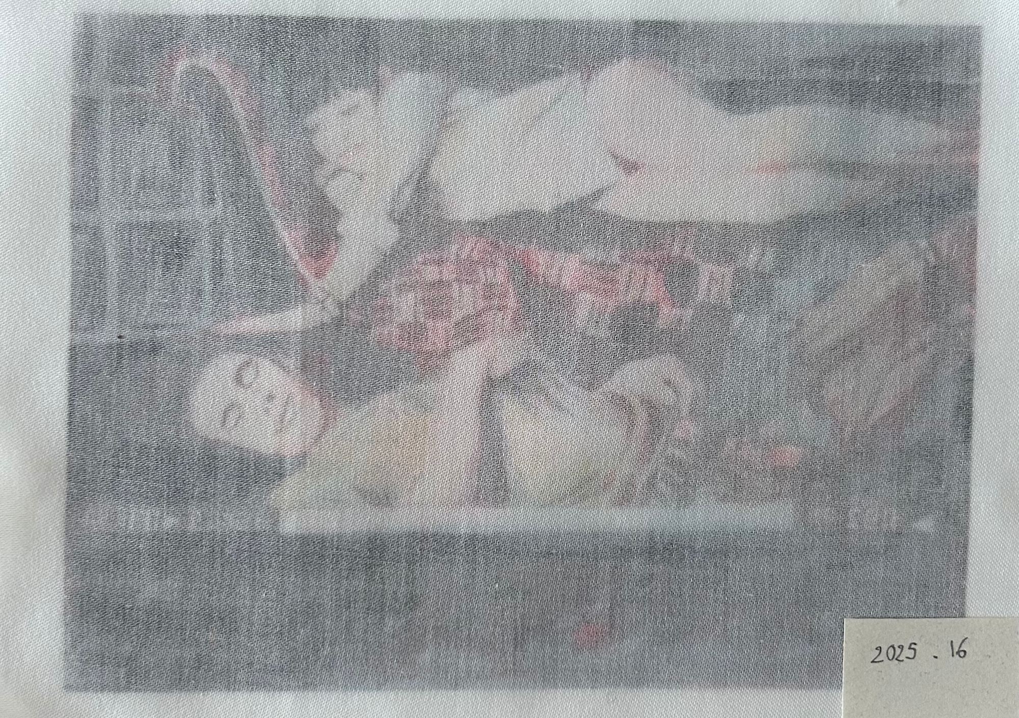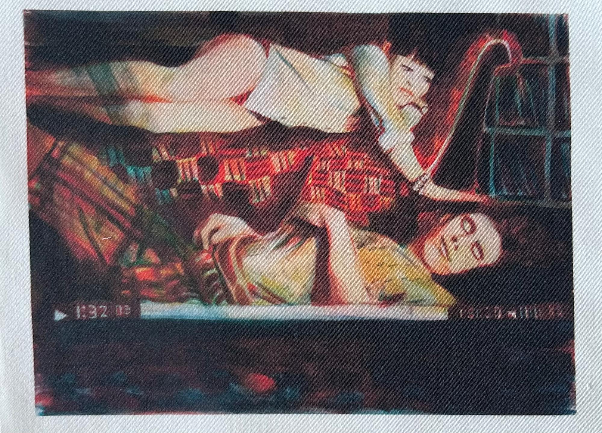Reproduction en 2 exemplaires de peintures, sur tissu écologique à l'encre à l'eau.