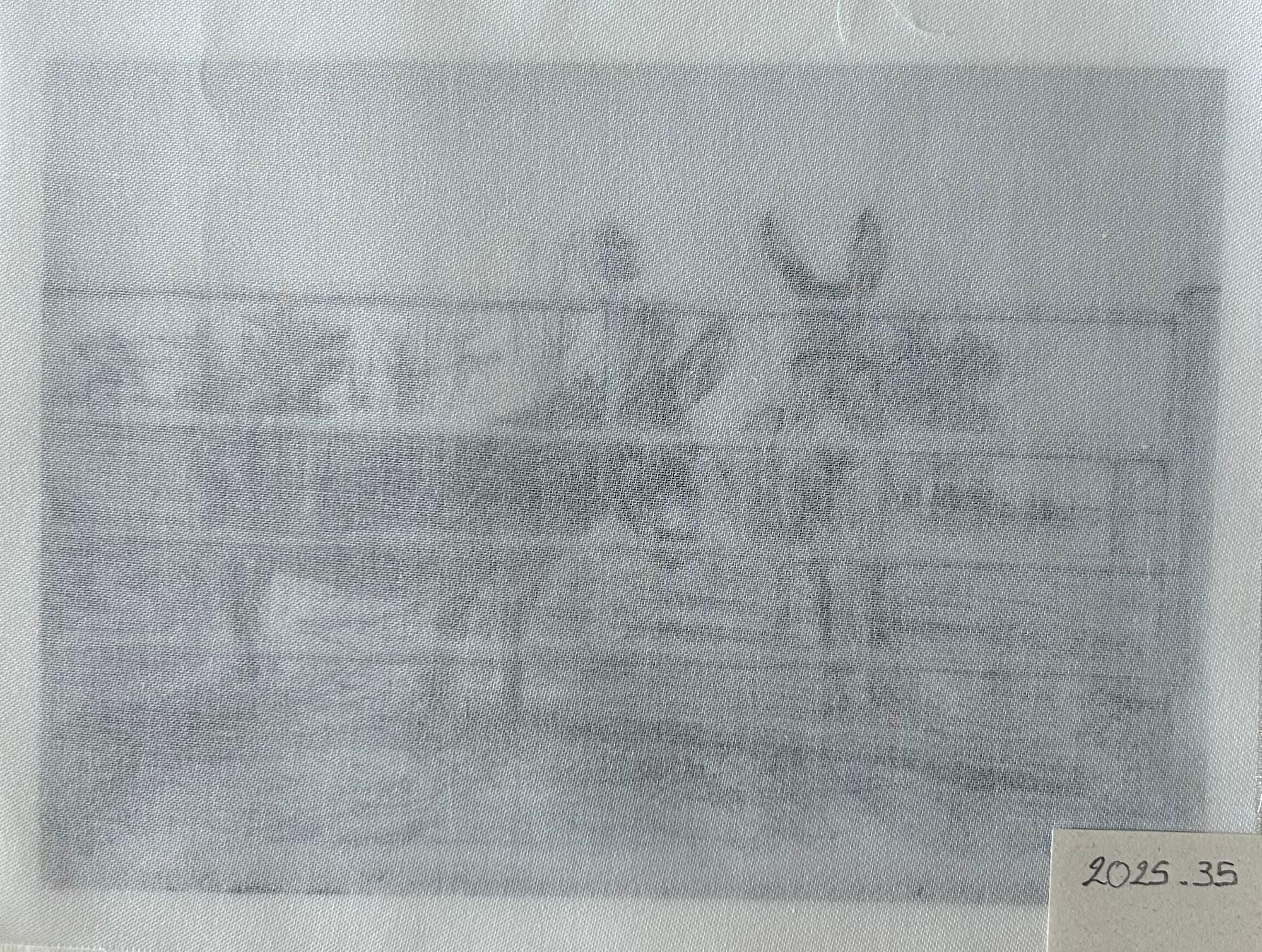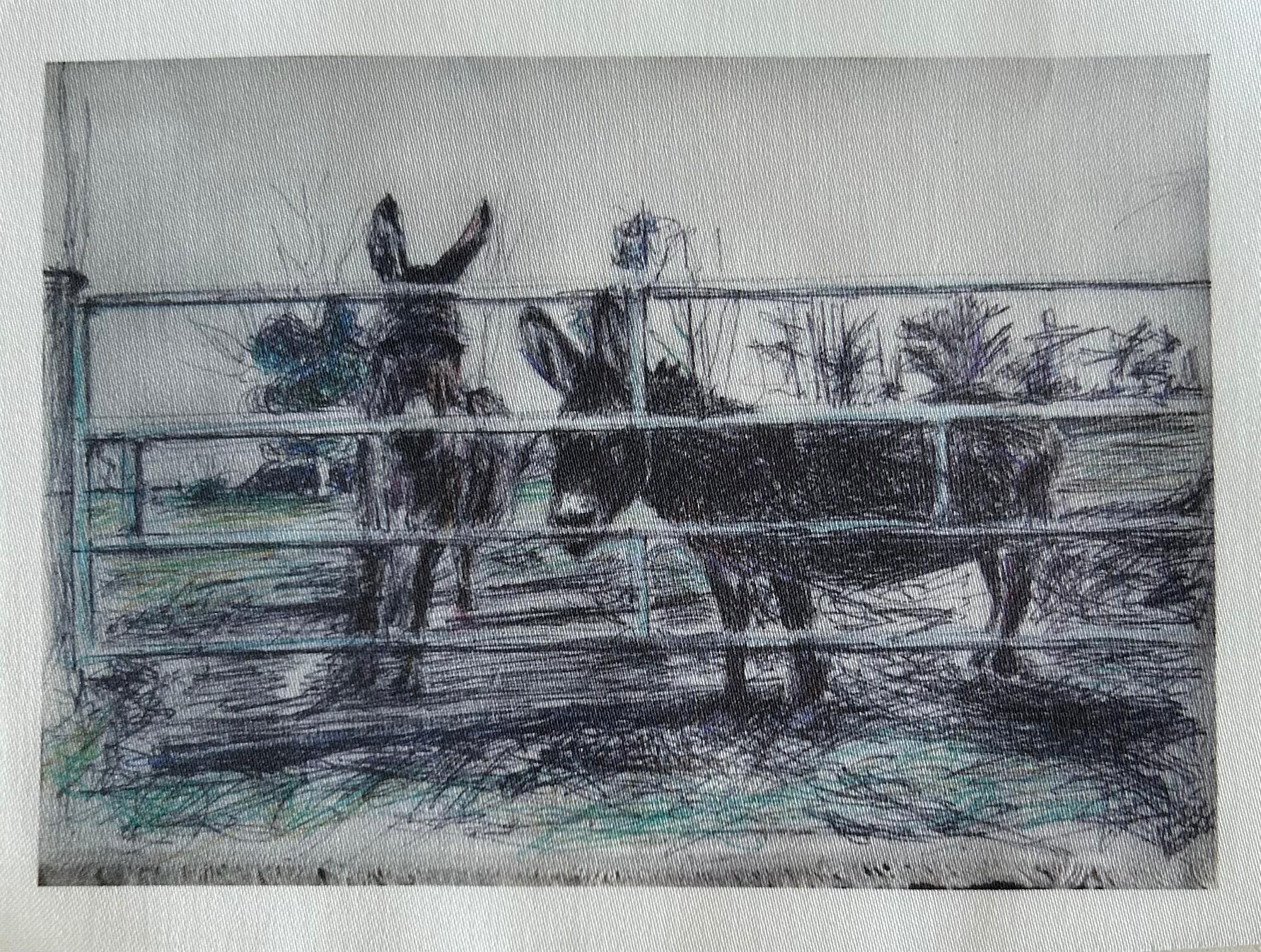 Reproduction en 2 exemplaires (1 vendu) de dessin, sur tissu écologique à l'encre à l'eau.