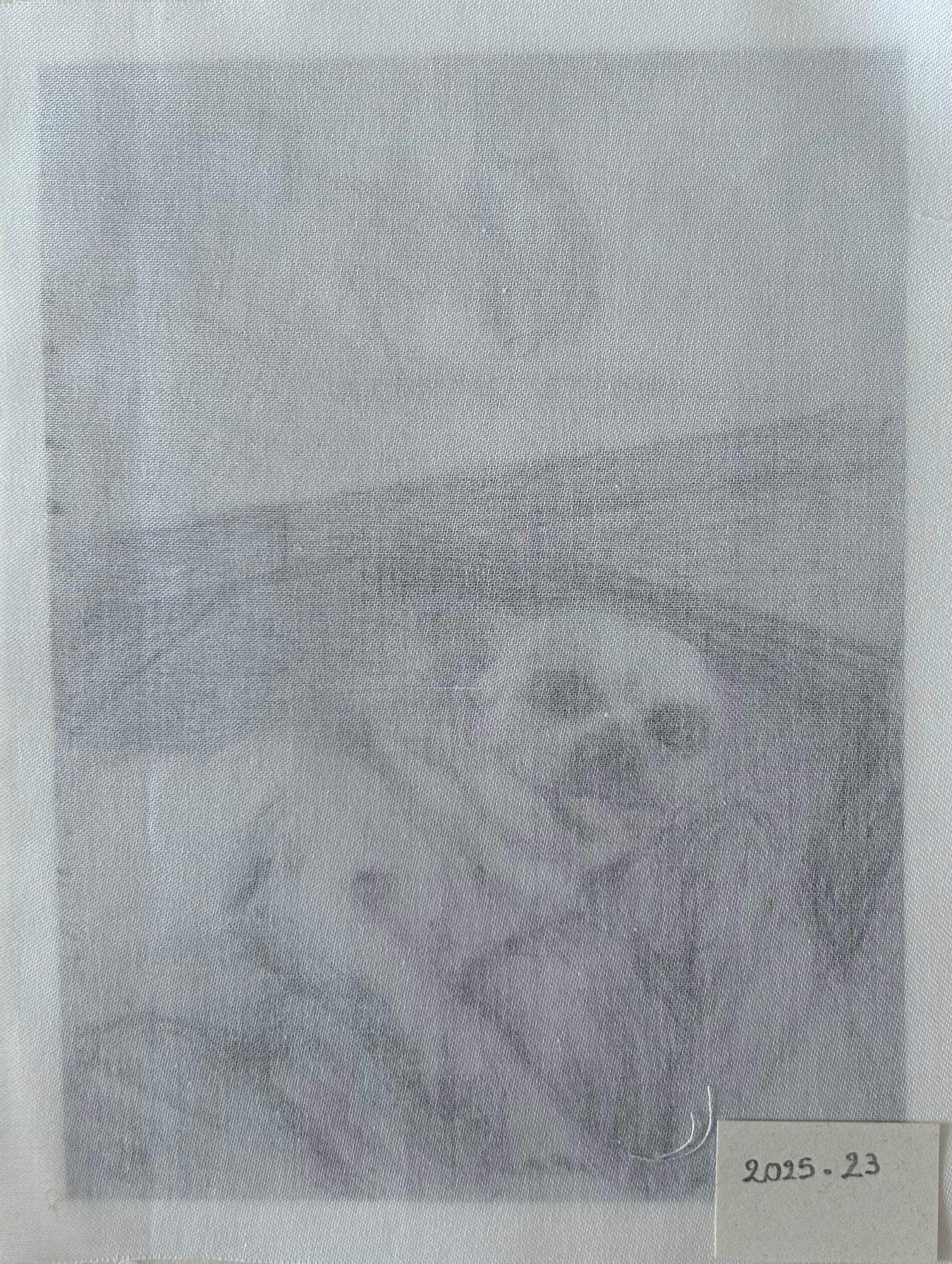 Reproduction 2 exemplaires de dessin, sur tissu écologique à l'encre à l'eau.