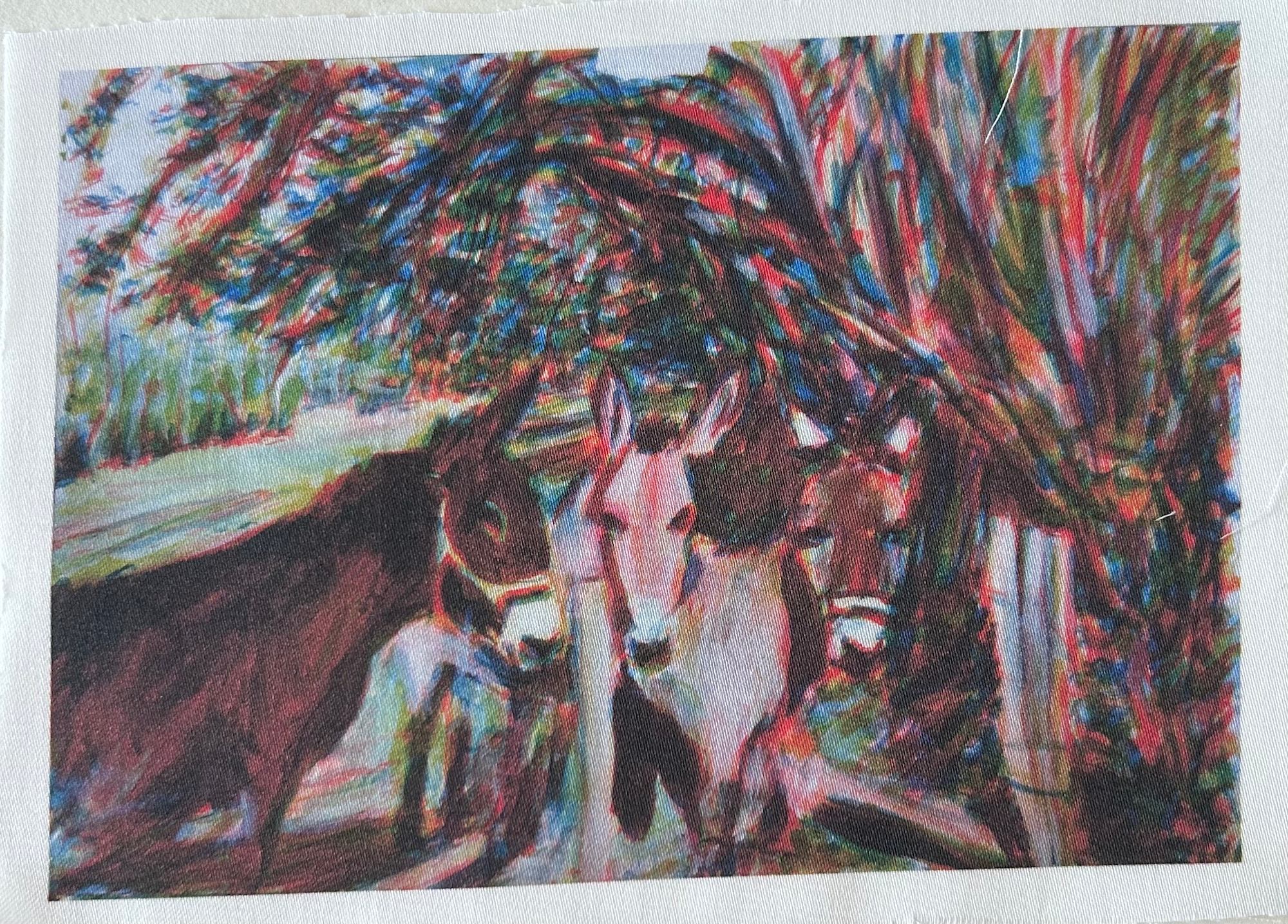 Reproduction en 2 exemplaires (1 vendu) des peintures de la série "Puy-de-Dôme", sur tissu écologique à l'encre à l'eau.