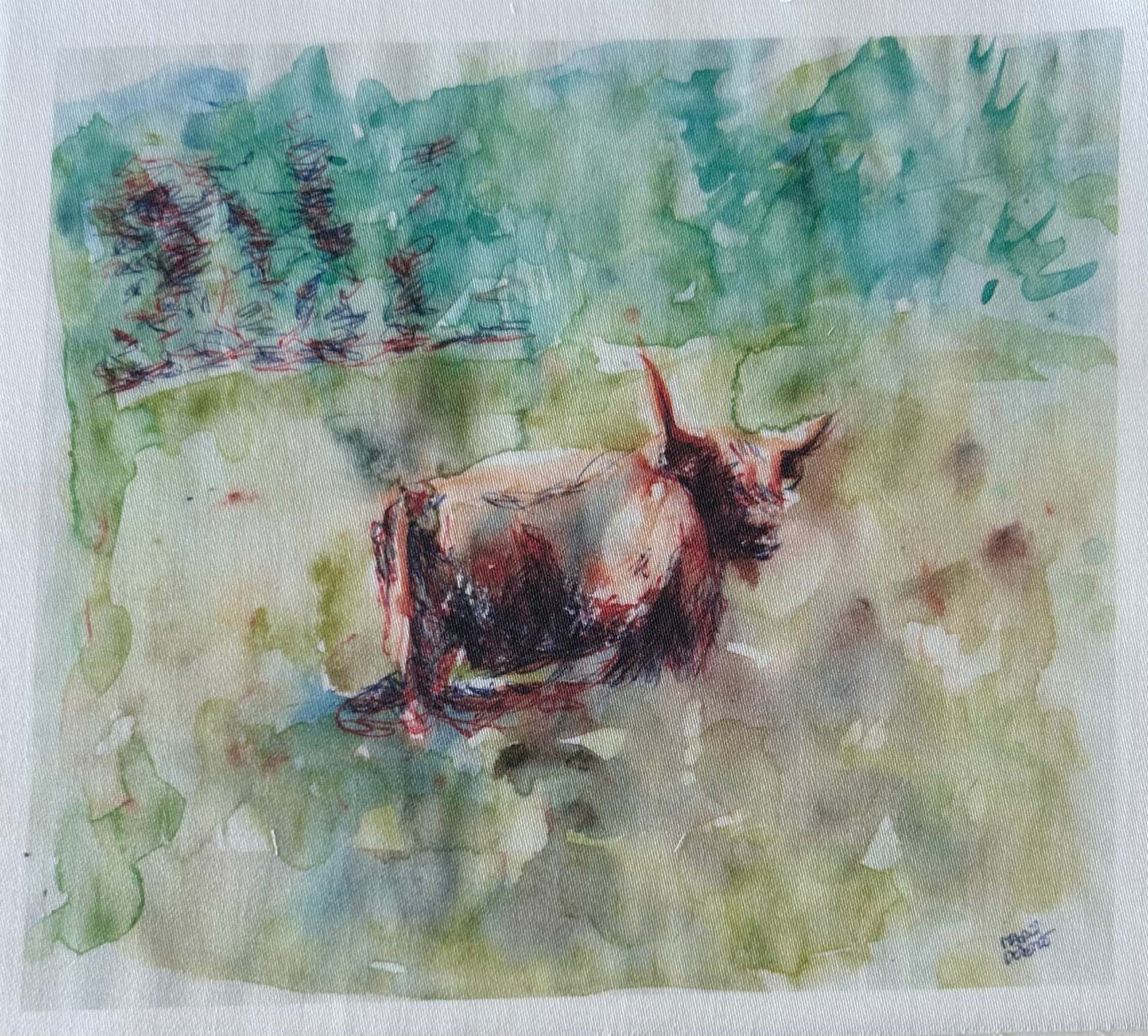 Reproduction 2 exemplaires de dessin, sur tissu écologique à l'encre à l'eau. 1 a été vendu