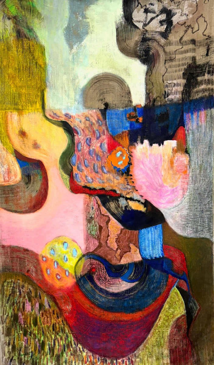 "It's Happening Now" by Marie Faulkner  Image: "It's Happening Now" Mixed media on linen