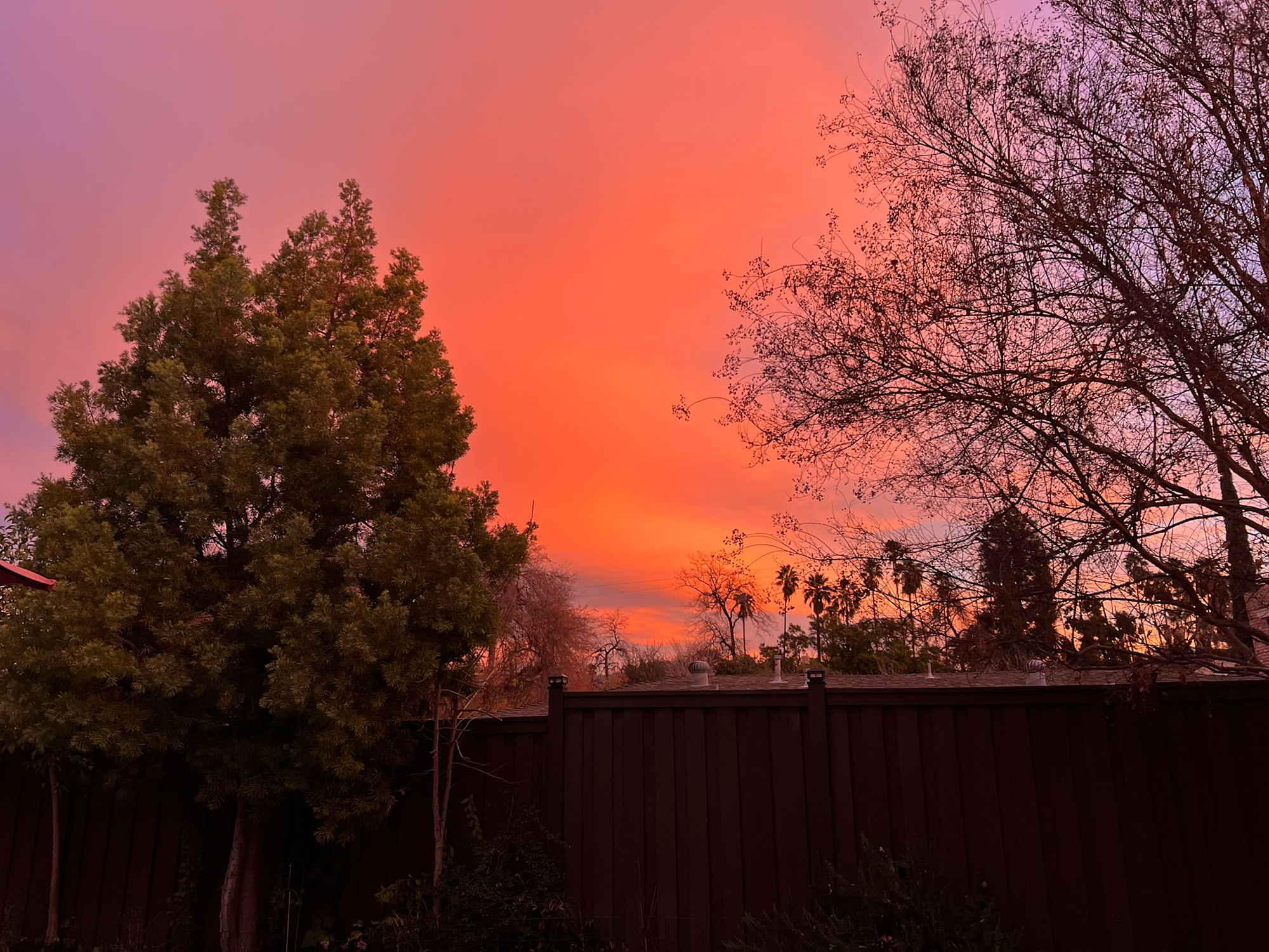 Photograph of my back yard during the 2024 fire season in Redlands, California