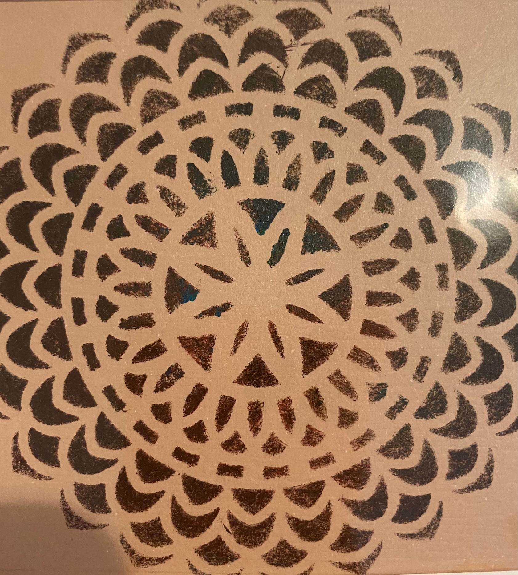 Mandala-Gold Brown, Acrylic Stencil Print with mat and backboard