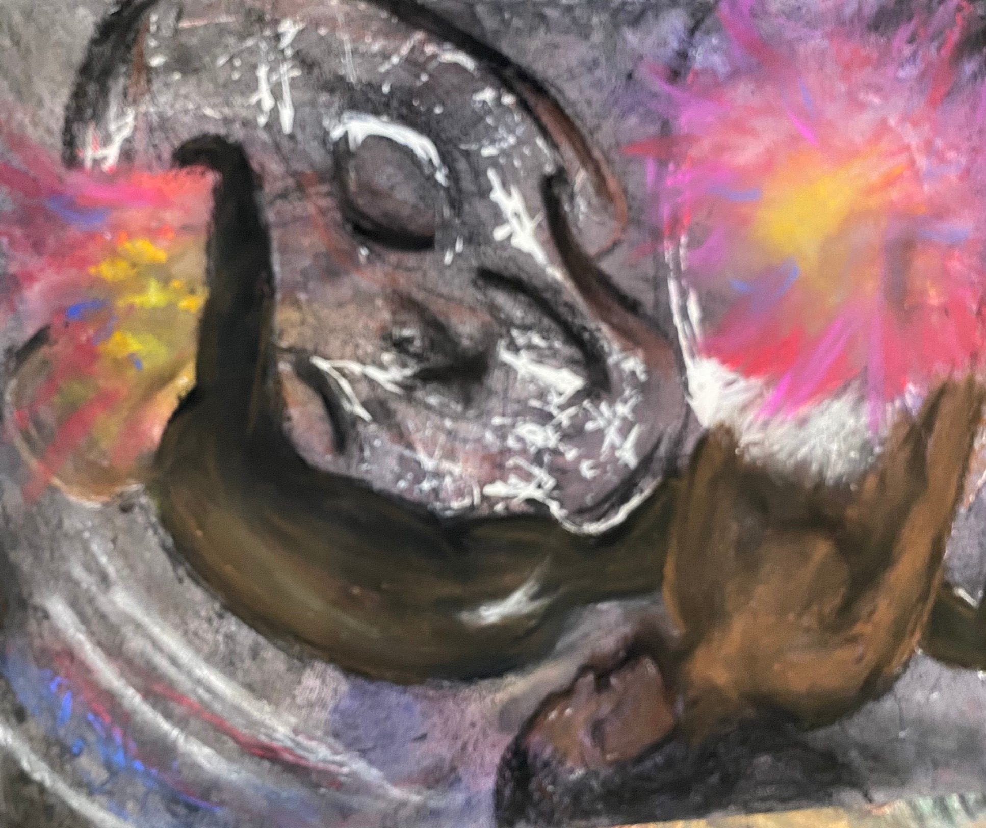 Pieces of Original Paint and Chalk Drawing that my dogs ate with Mat and Backboard