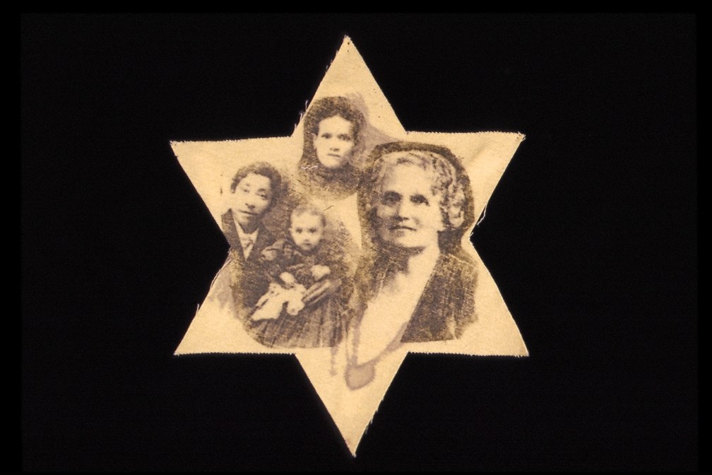 Ink and Photo-transfer on dyed yellow fabric