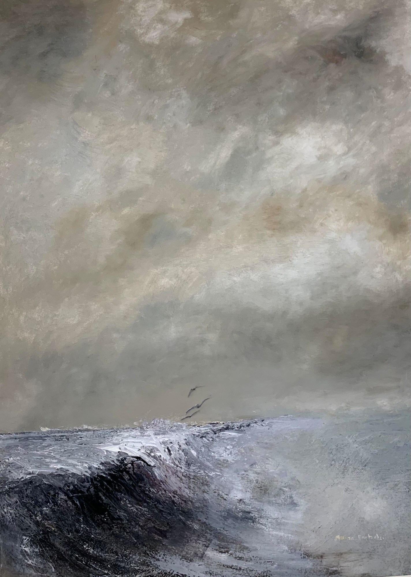 They say that low flying birds indicate rain.....The movement of water with its shapes, patterns and colours that swirl into and out of each other create fascinating abstract imagery. The water paintings also tell a story. They suggest a metaphor of the human experience as we experience our journey through life and how ripple effects affect our life. Water suggests a powerful energy as the viewer becomes mesmerized by the reflected movement of the waves. The paintings are meant to evoke emotions and give importance to the element of water so vital to our existence but so often taken for granted or wasted.