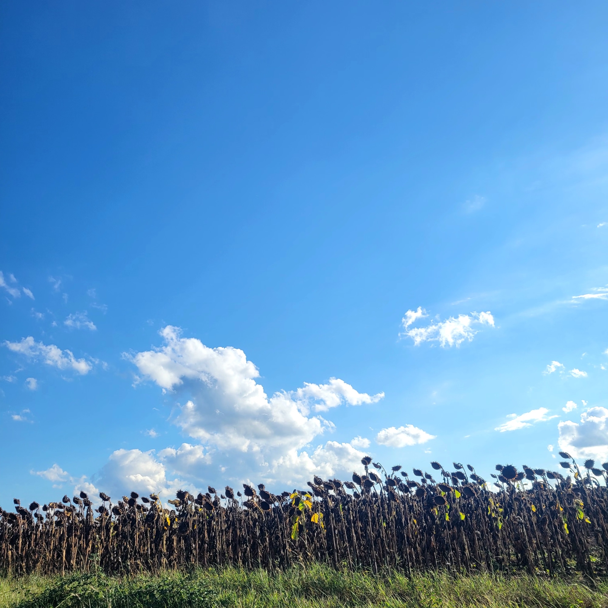 I started looking at those dry and mysterious, stressed-looking tourne-sols🌻 during my walks. The sunflower fields were not lush and green, but brown and dry.