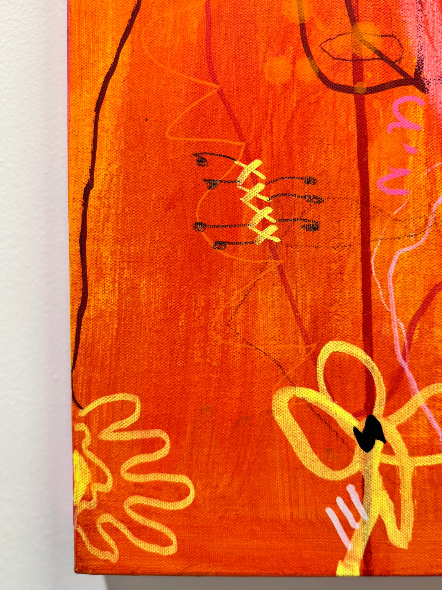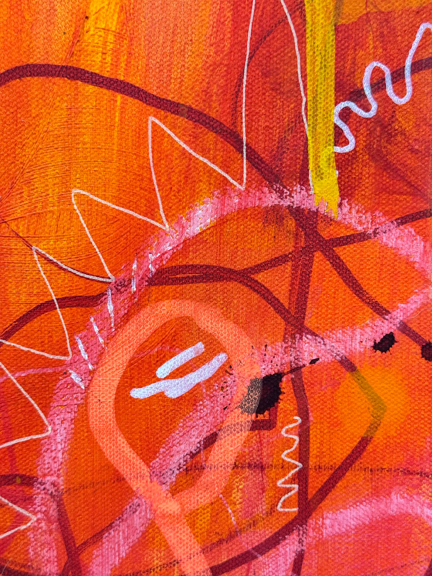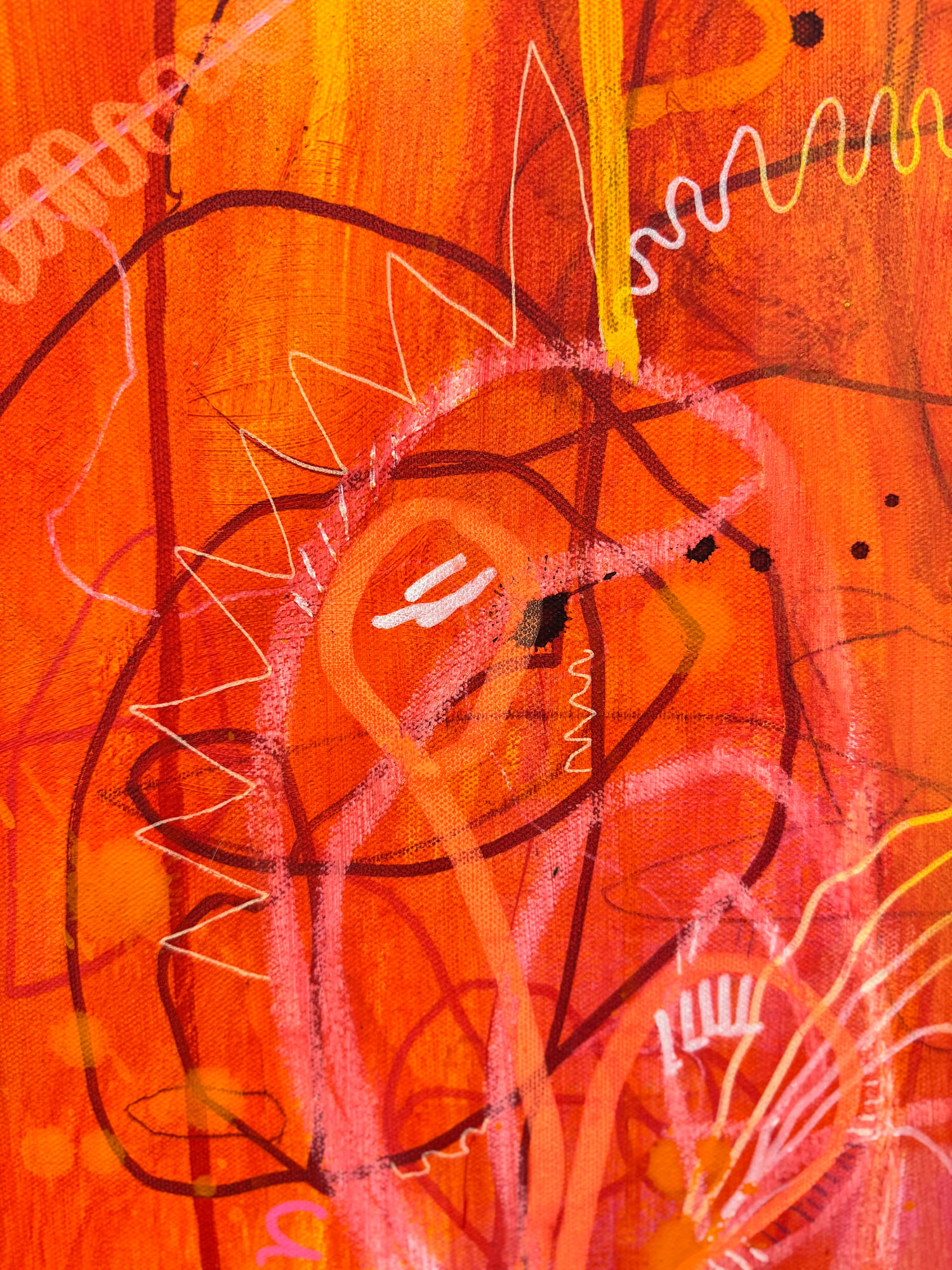 Mixed media on canvas — acrylic, paint markers, graphite, colored pencils, and oil pastels