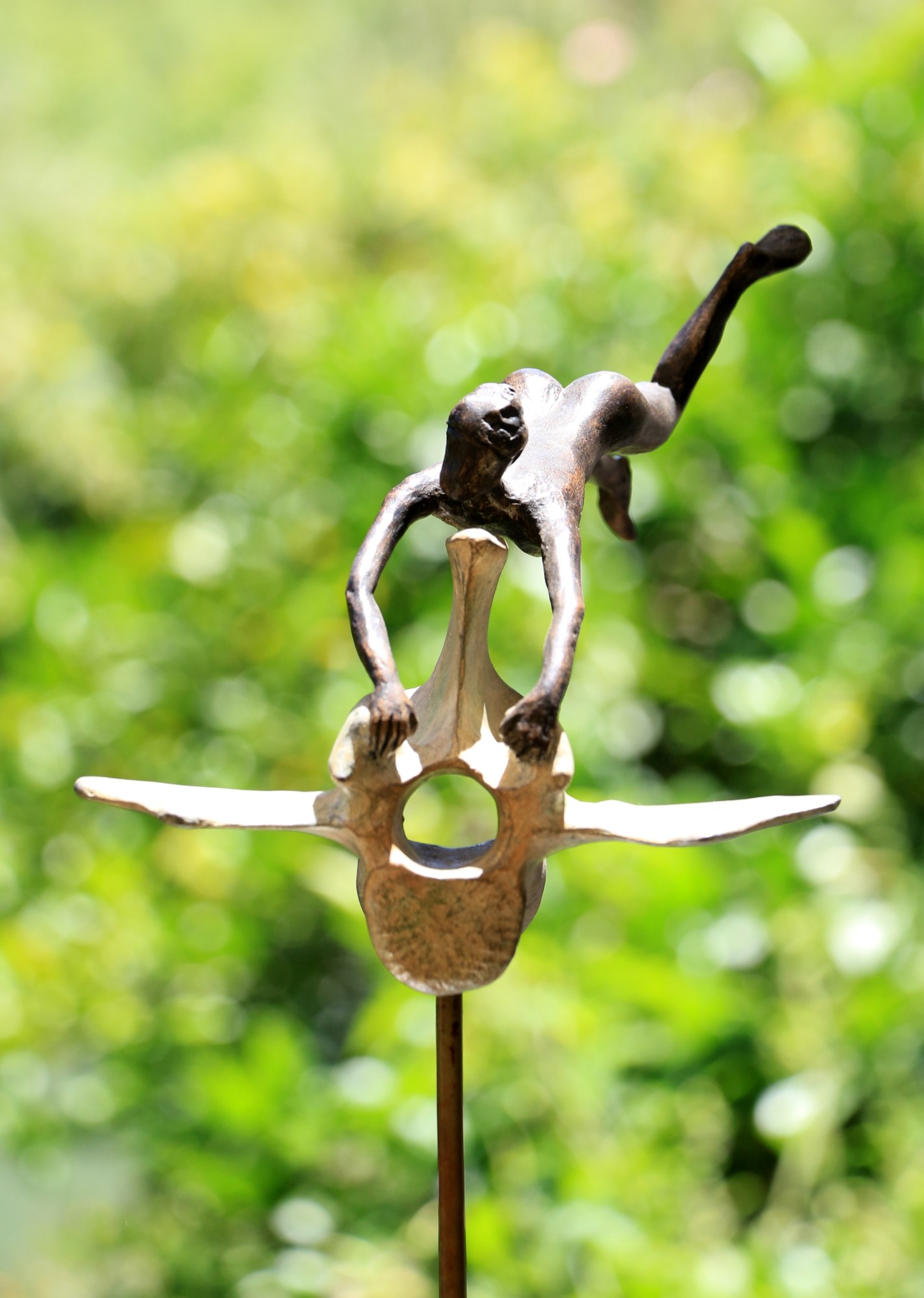 These sculptures suggest interconnectedness, pleasure and play between nature and being human. The meaning of ‘backbone’ in the figurative sense of firmness of purpose and strength of character also appeals to me.
